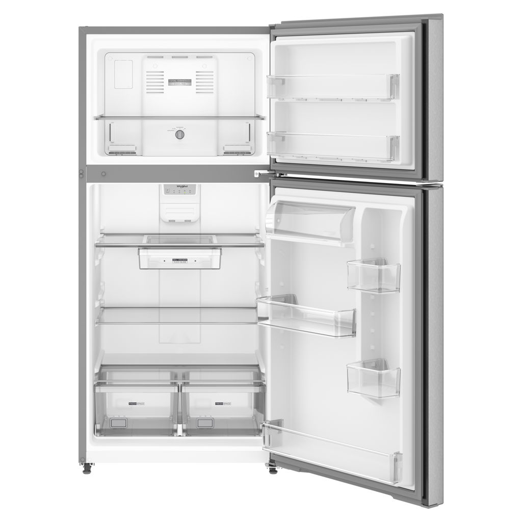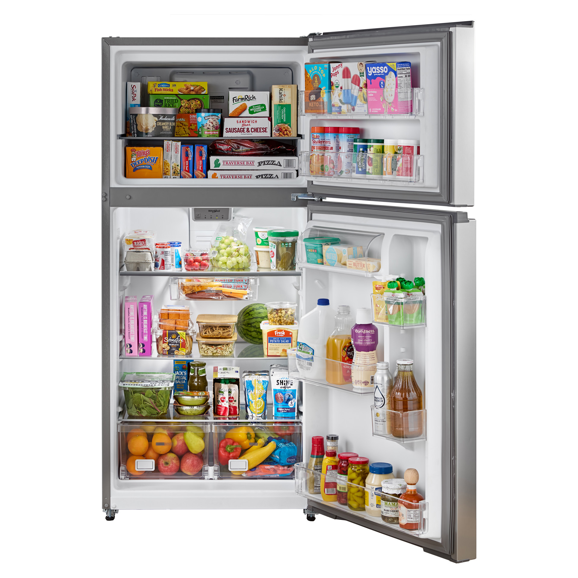 Ce réfrigérateur Whirlpool® de 75 cm (29,5 po) à congélateur supérieur est doté de la technologie Total Coverage Cooling pour éviter les zones froides. Le tiroir à charcuterie Flexi-slide™ coulisse latéralement pour optimiser l'espace.