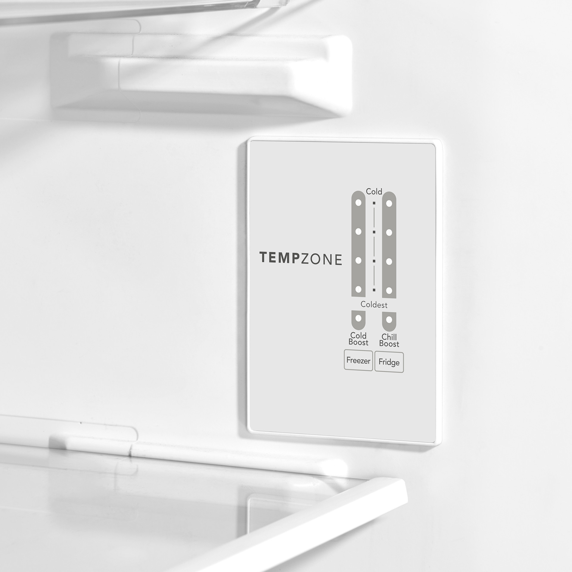 Nos grands bacs offrent plus d’espace de rangement et d’organisation au niveau de la porte, sans perdre l’espace précieux des tablettes.