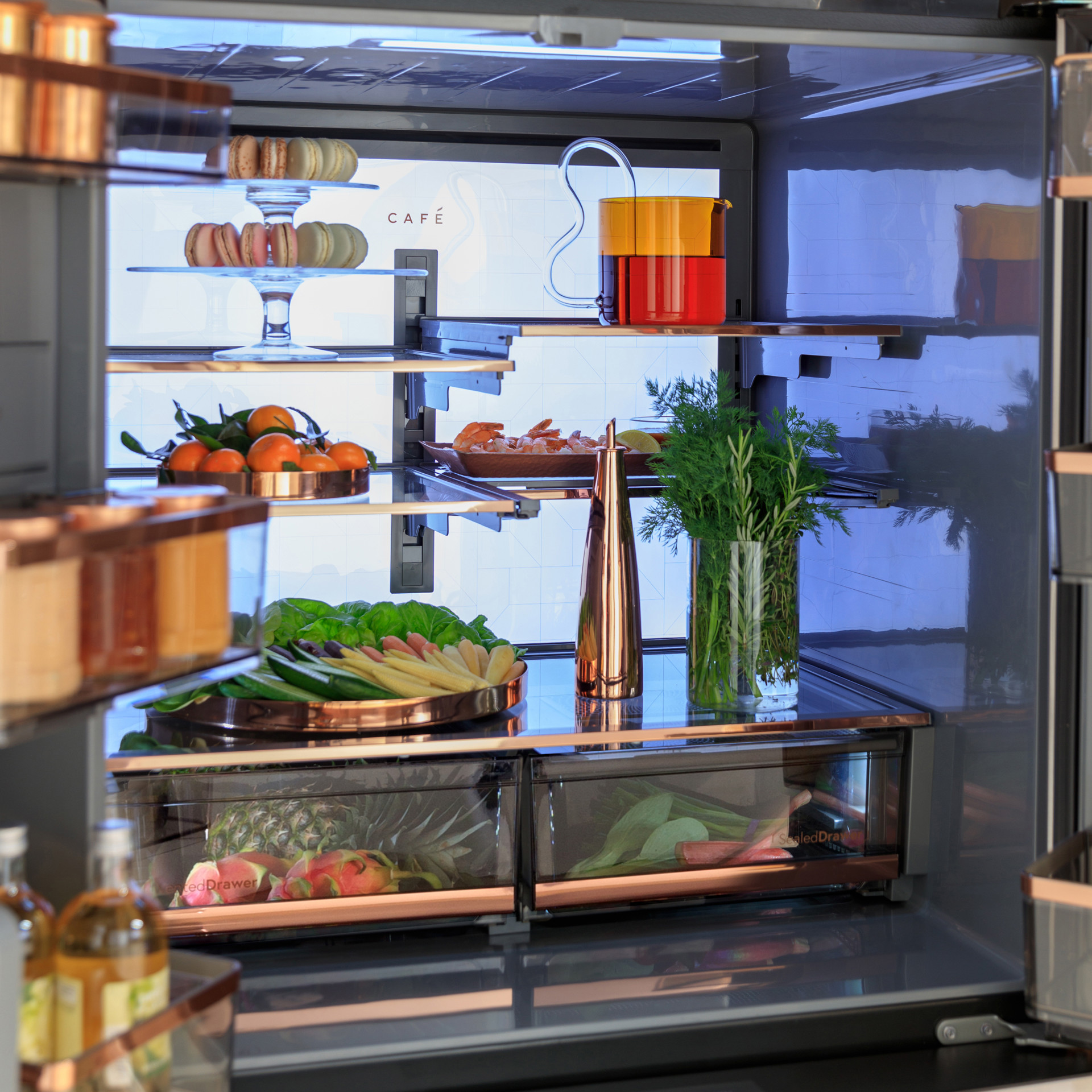 Savourez la lueur vive et uniforme du mur lumineux à LED qui s'étend sur la paroi arrière du réfrigérateur, conçu pour une meilleure visibilité de la section des aliments frais afin que chaque article soit facile à trouver.