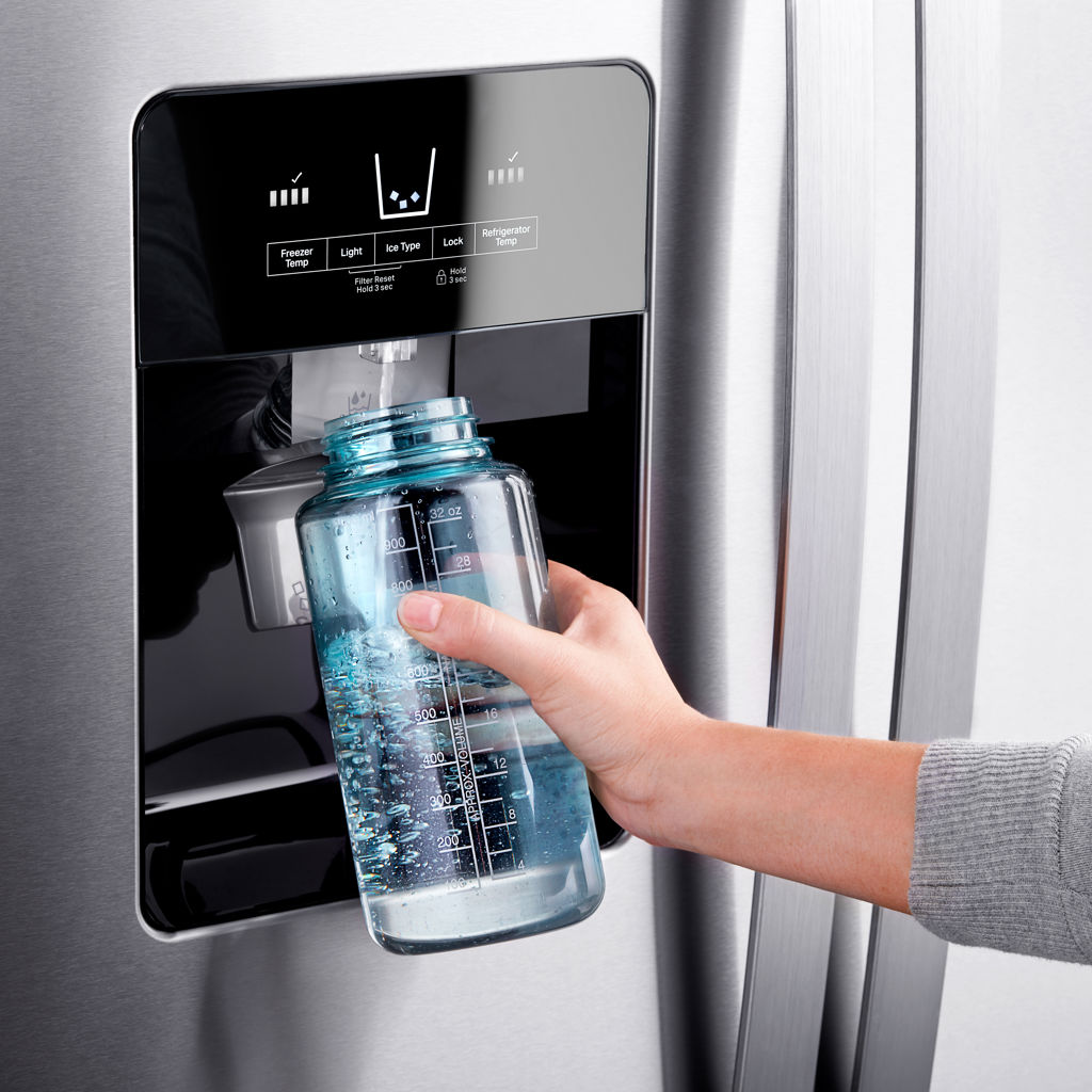 Bénéficiez d'espaces astucieusement conçus pour les articles que vous utilisez le plus fréquemment dans ce réfrigérateur Energy Star®. Les balconnets de porte réglables se déplacent partout, vous permettant une plus grande polyvalence de rangement. Le réfrigérateur doté d'un distributeur d'eau et de glaçons vous permet de vous servir sans ouvrir la porte. De plus, l'éclairage à DEL de ce réfrigérateur homologué ENERGY STAR® procure une belle apparence à vos aliments.