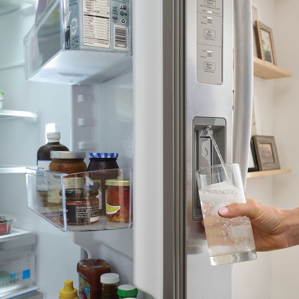 Le distributeur d'eau de bord de porte vous offre de l'eau fraîche et filtrée tout en donnant une finition extérieure propre dans votre cuisine.
