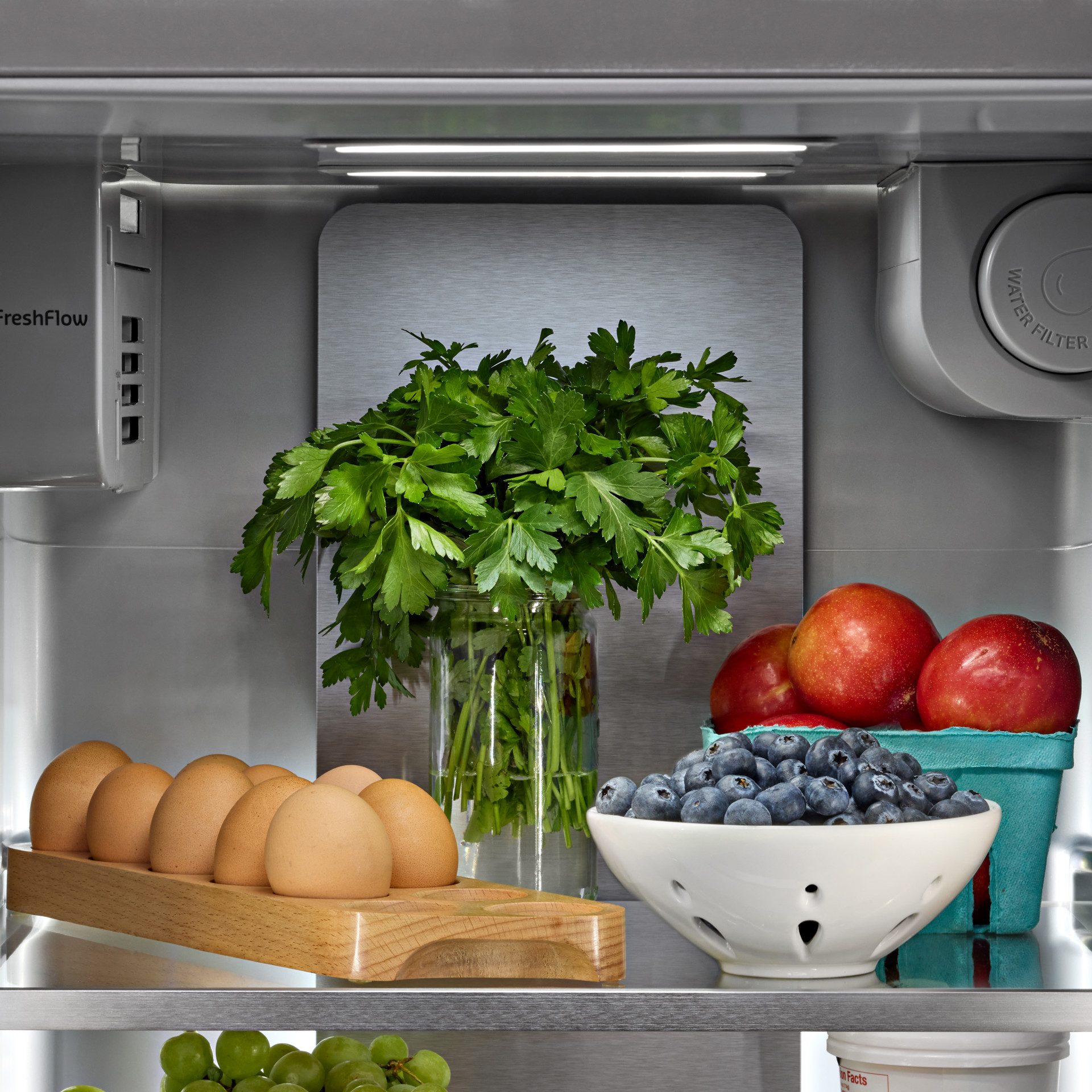 Le bac à légumes à humidité contrôlée procure un espace spécialement dédié aux fruits et légumes et permet d’ajuster les niveaux d’humidité. Choisissez un taux d'humidité élevé pour que les légumes restent croquants, un taux d'humidité faible pour que les fruits restent frais ou un réglage intermédiaire pour équilibrer les besoins des deux.