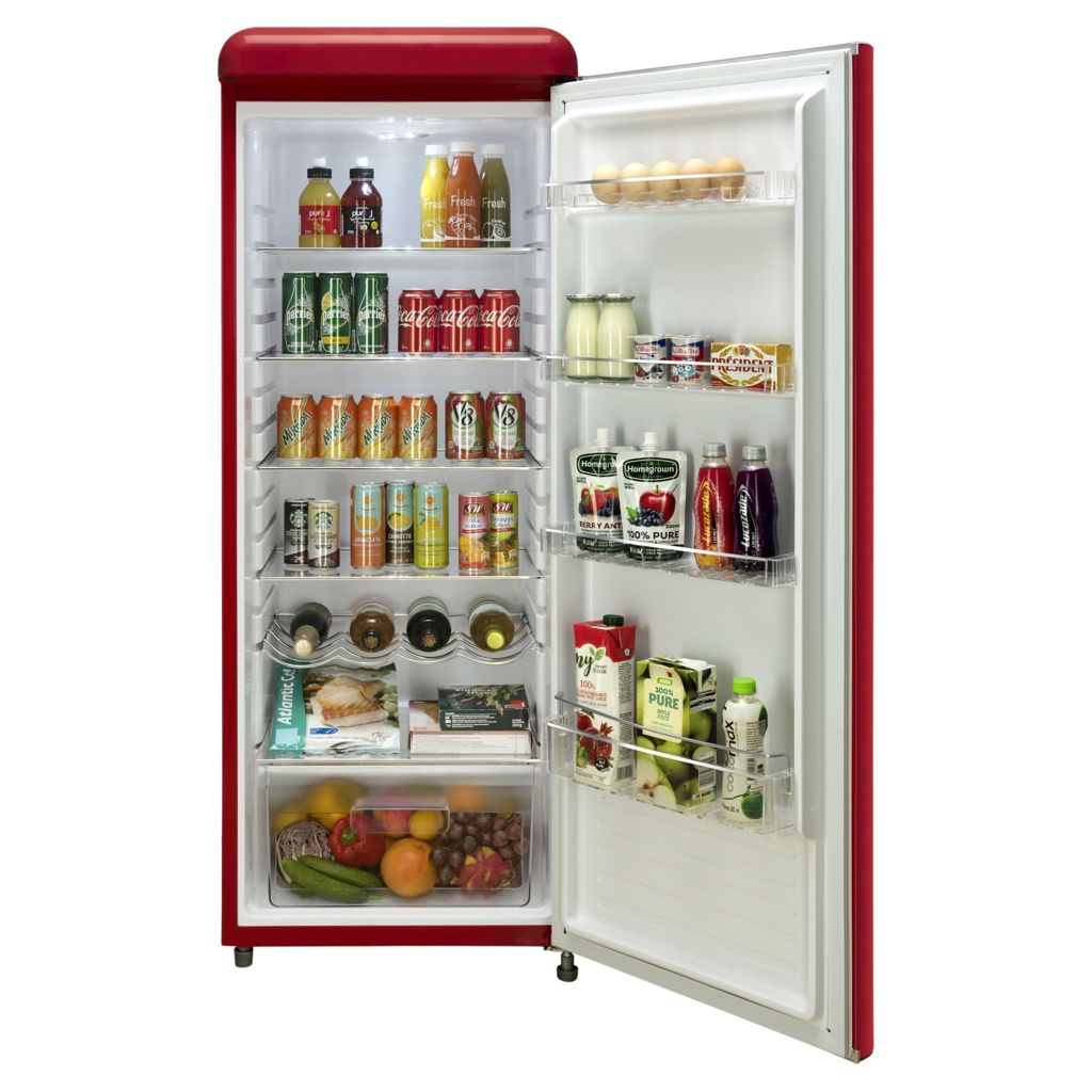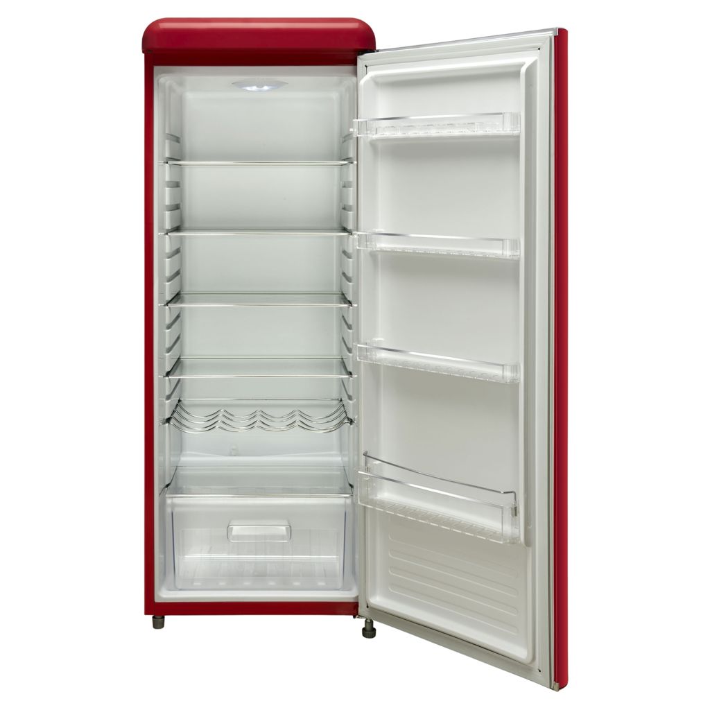 Ce réfrigérateur tout-en-un de 9.0 pi³ rouge rétro est certifié EnergyStar et doté d'un système de dégivrage automatique à haute efficacité.