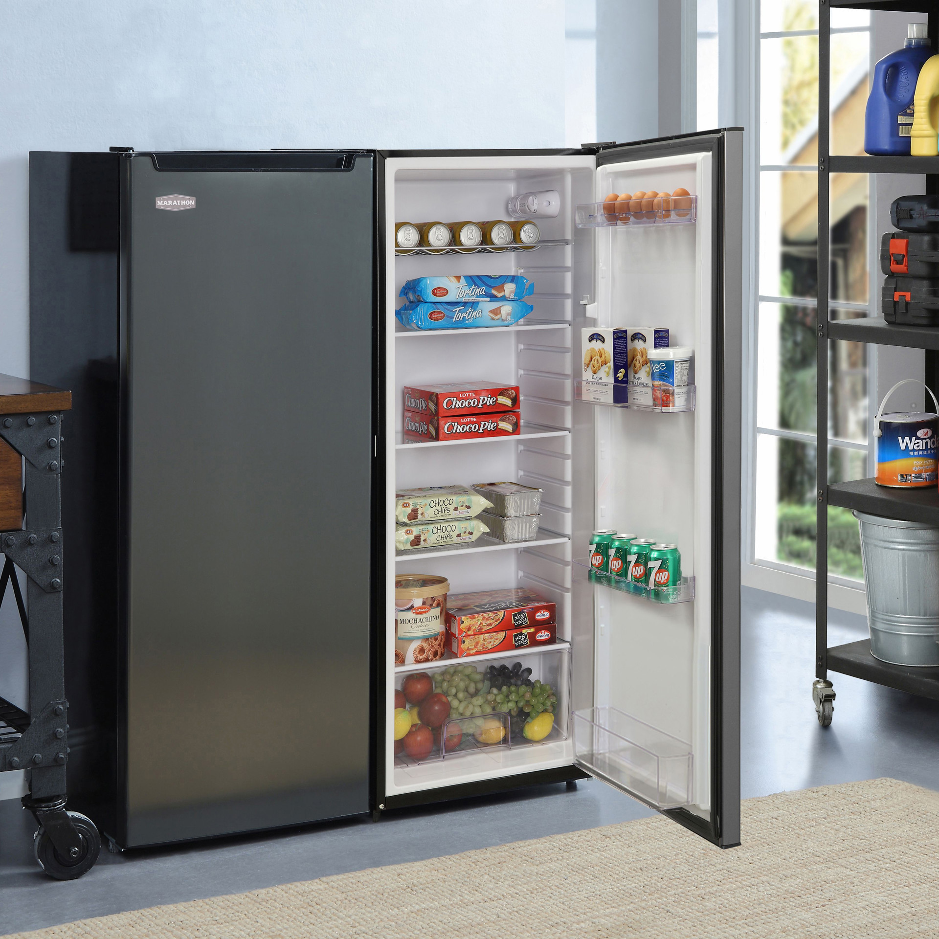 Pouvant être installé seul ou de façon juxtaposée avec le congélateur vertical de Marathon, ce tout réfrigérateur comporte un système de dégivrage automatique, 3 tablettes réglables en verre trempé, un porte-bouteille chromé pour 5 bouteilles en plus d’être certifié Energy Star.