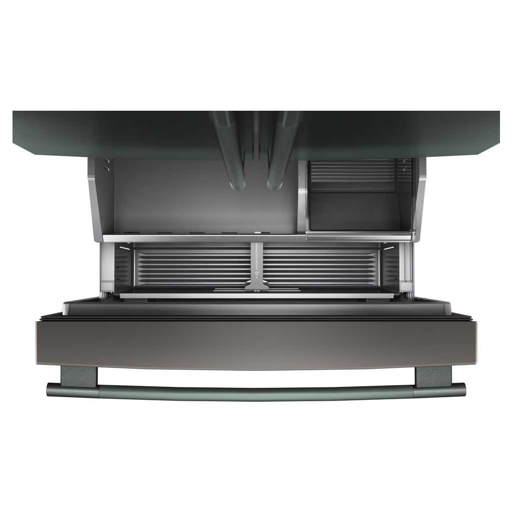 Ce réfrigérateur impressionne de l'intérieur comme de l'extérieur par son design et sa fabrication haut de gamme. Les finitions imitation bois, les touches métalliques, les bacs à légumes fumés et l'éclairage LED ultra-lumineux contrastent avec la superbe finition argentée.