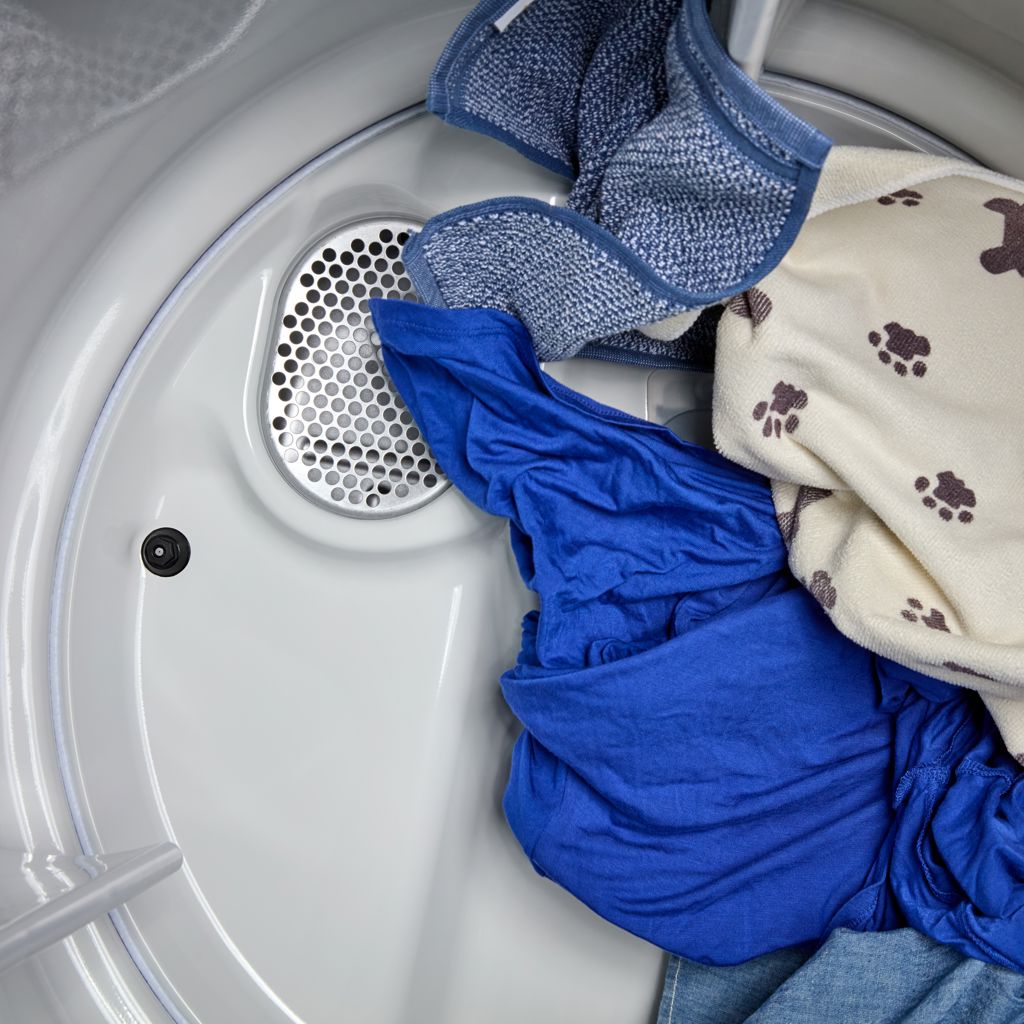 La sécheuse Animal Pet Pro de Maytag® piège et élimine les poils d'animaux des vêtements. L'option Animal Pet Pro soulève et capture les poils d'animaux des vêtements et les piège dans le filtre à charpie.