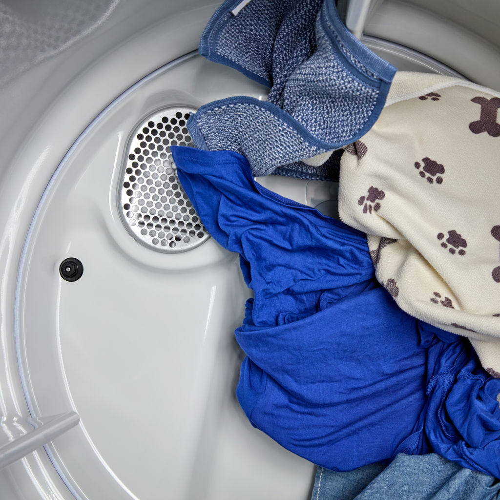 La sécheuse Animal Pet Pro de Maytag® piège et élimine les poils d'animaux des vêtements. L'option Animal Pet Pro soulève et capture les poils d'animaux des vêtements et les piège dans le filtre à charpie.