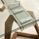 Découvrez l'alliance parfaite entre élégance et fonctionnalité avec cette magnifique table extensible. Son plateau en verre transparent crée une sensation d'espace et de légèreté, tandis que sa structure en bois aux lignes épurées apporte chaleur et caractère à votre intérieur.