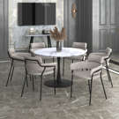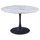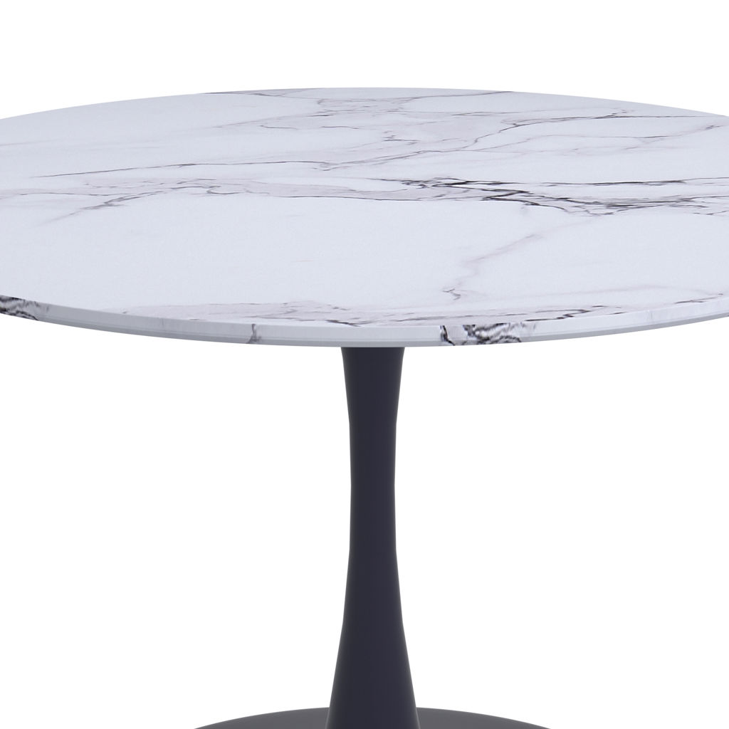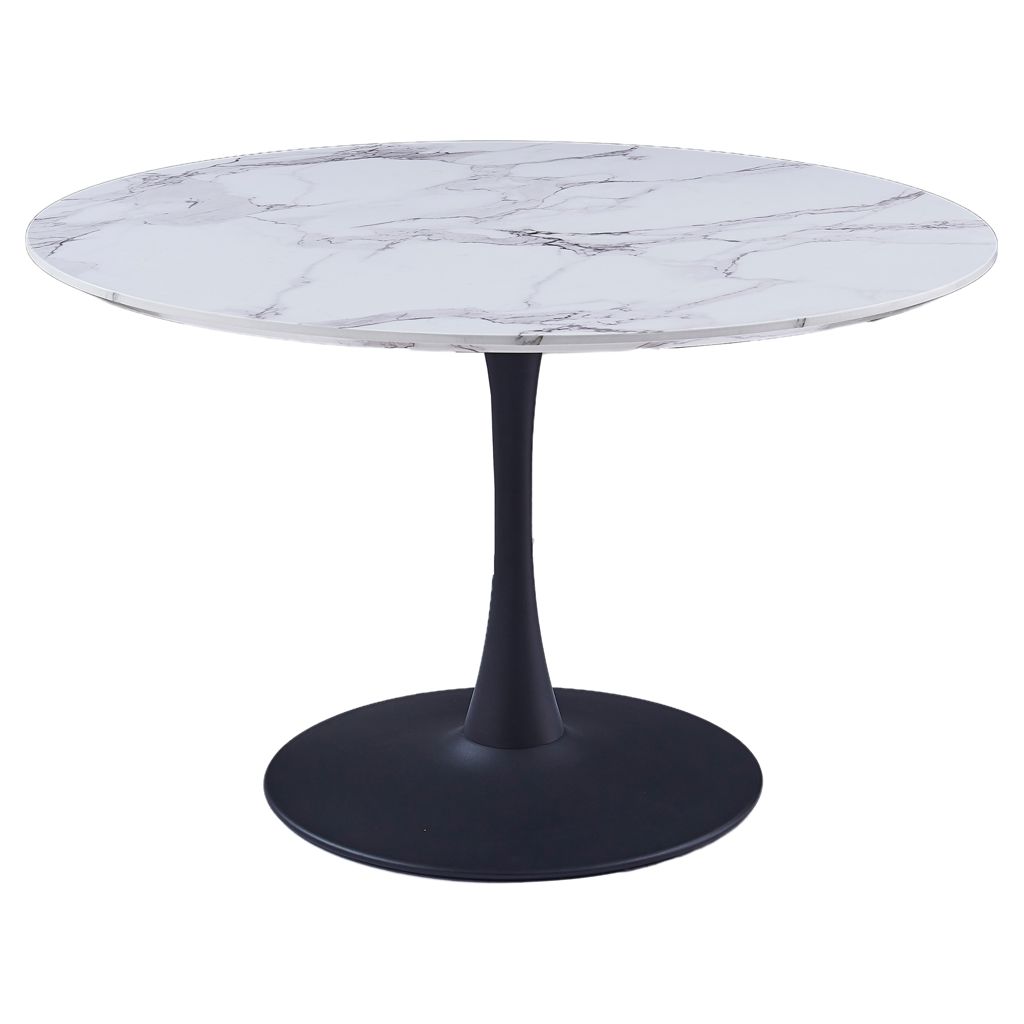 Cette solide table à piédestal deviendra facilement le centre de l'attention dans votre salle à manger. Les courbes de la base donnent un attrait de mi-siècle, tandis que le dessus en simili-marbre apporte une touche de modernité.