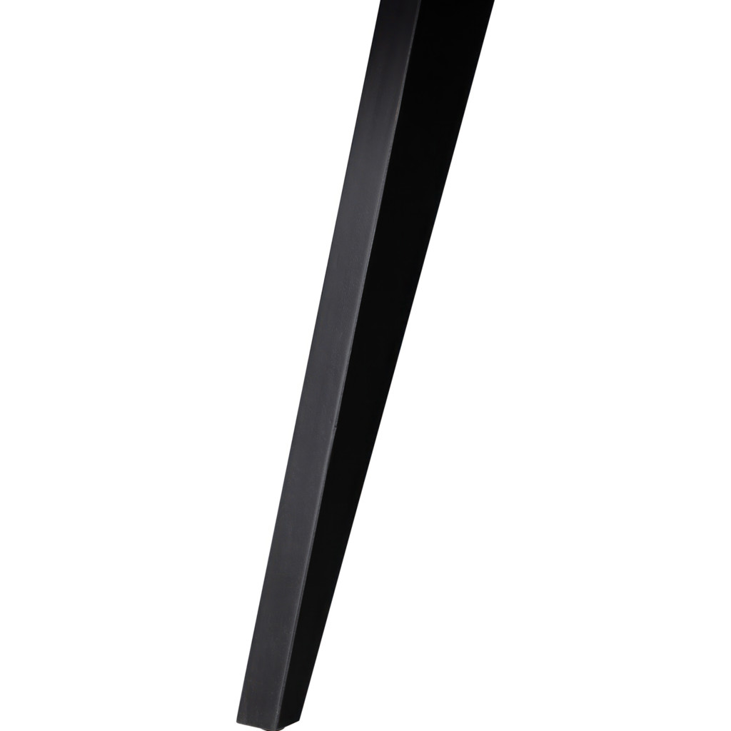 Le plateau en parquet de la table est complété par d’élégants pieds peints en noir, la base robuste en métal industriel offrant un contraste saisissant.