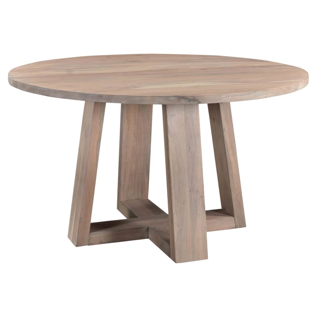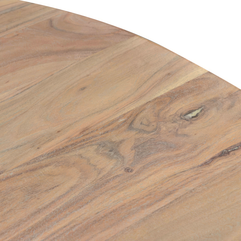 Légèrement lumineuse dans une finition scandinave blanchie à la chaux, la table à manger ronde Tanya est fabriquée en bois d’acacia massif avec une finition blanchie à la chaux d’inspiration organique.