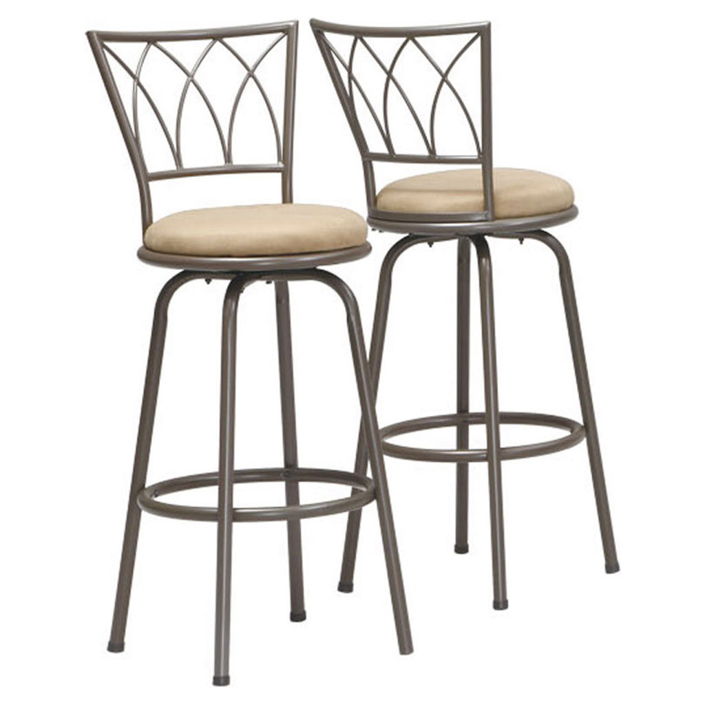 Avec son fini café, cet ensemble de tabouret est parfait pour tout type de salles de jeux ou de salles à diner. Son dossier de lattes horizontales élevé, son assise beige rembourrée en microfibre noir et son appui-pieds polyvalent, ce tabouret volera la vedette à vos prochaines réceptions avec famille et amis. Dossier haut vous offre plus de support. Siège pivotant et piedestal bien placé pour votre confort. Conception contemporaine. Ensemble de 2 tabourets.