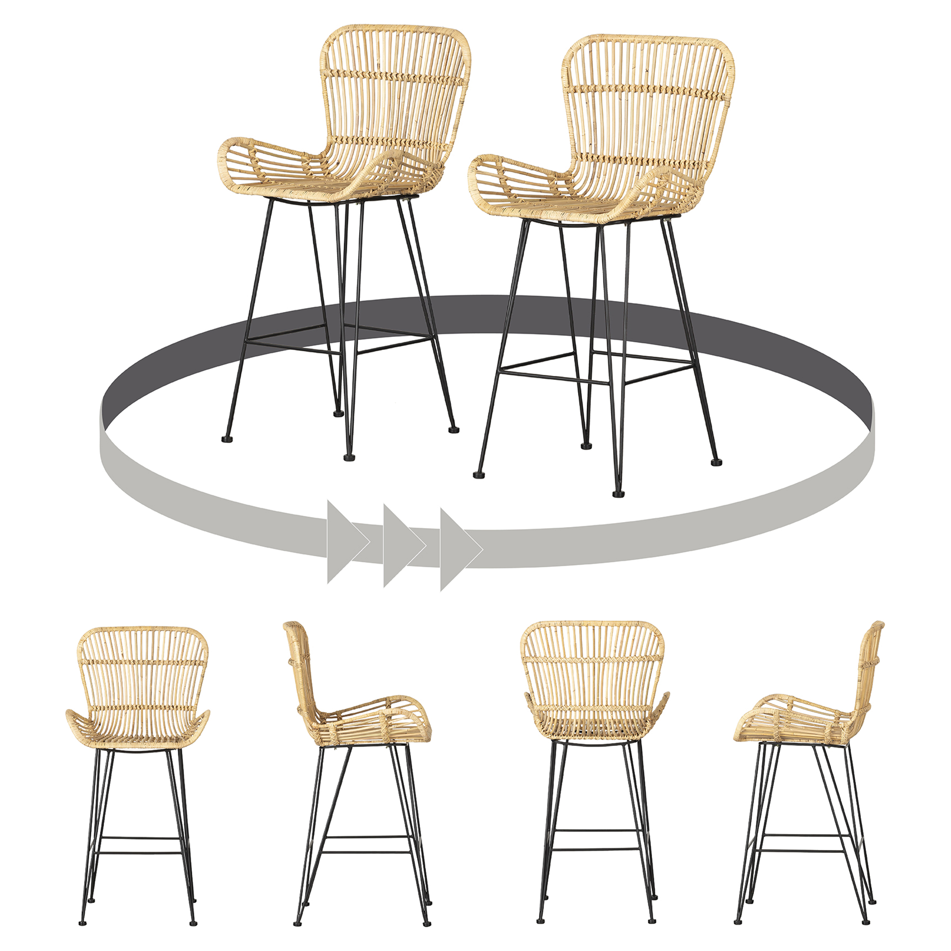 Cet ensemble de chaises hautes en rotin est tout simplement ce dont vous avez besoin à maison. Qu’elles soient près de votre comptoir-lunch, à votre ilot de cuisine, ou dans votre bar maison au sous-sol, elles créeront le parfait espace convivial dans votre pièce. Votre famille et vos invités pourront s’y installer confortablement pendant plusieurs heures : les dossiers et accoudoirs permettent de garder une position ergonomique en tout temps. Il est même possible de déposer ses pieds sur les tiges de métal qui ont été ajoutées aux pattes pour les reposer.