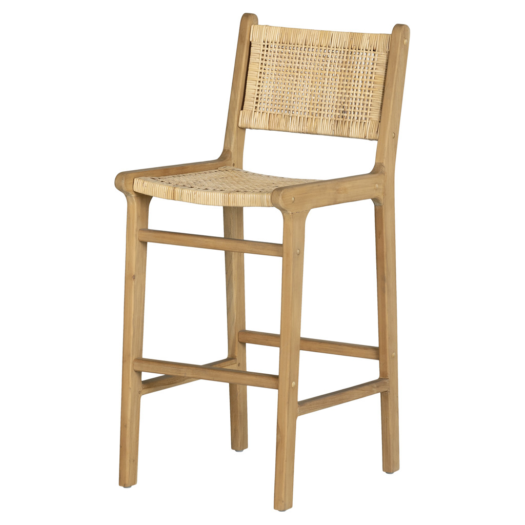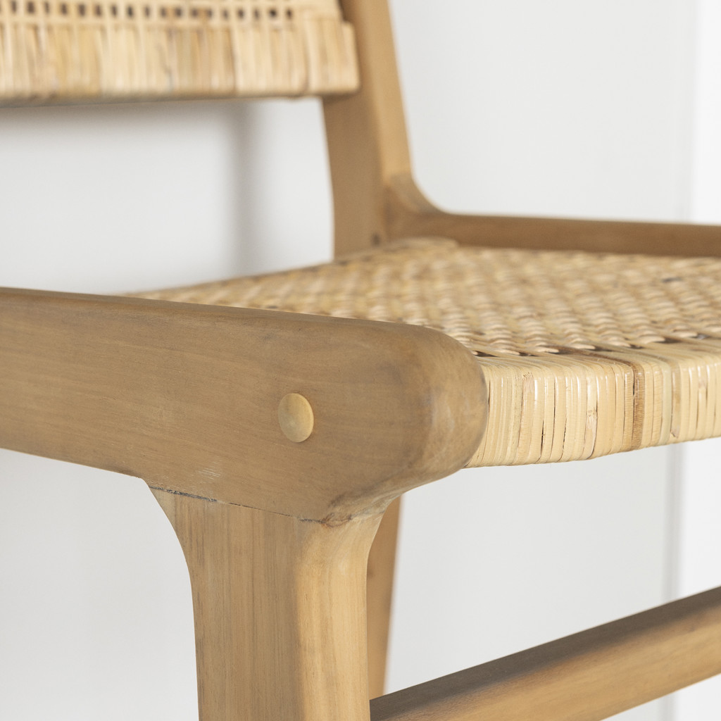 Ajouter une touche chaleureuse au décor de votre cuisine avec cette chaise parfaite pour le bar ou l’îlot. La combinaison du bois de teck et du rotin naturel ainsi que la découpe épurée de son design inspirent l’harmonie et le raffinement du style boho-chic. Chacun de ces tabourets est unique grâce aux variations dans le bois. Le contraste avec les couleurs et les matériaux de vos armoires et de vos comptoirs de cuisine les mettra en valeur!
