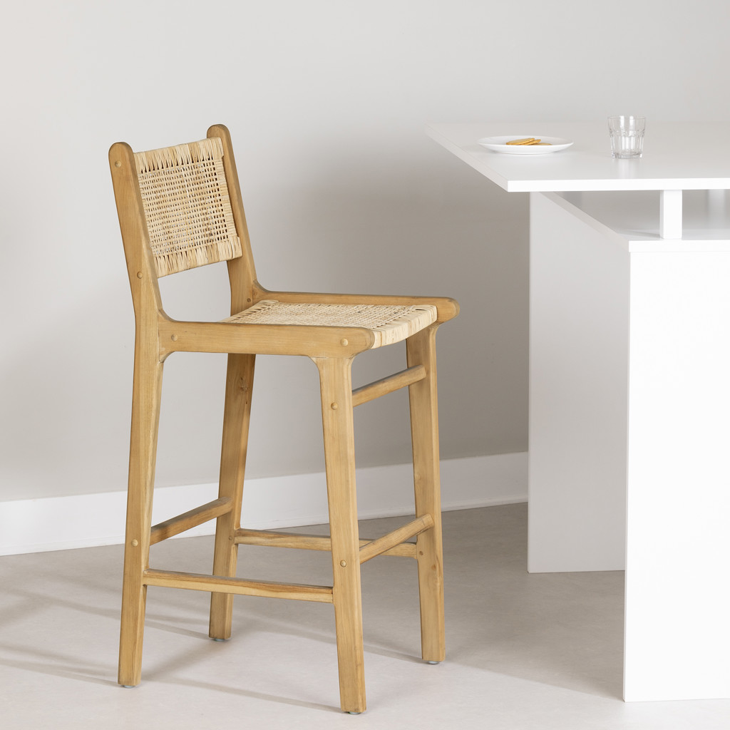 • CHAISE DE BAR BOHO-CHIC : ce charmant tabouret sera magnifique autour de votre îlot de cuisine. La combinaison du bois de teck et du rotin naturel lui donne un look exotique qui va créer une ambiance harmonieuse au cœur de votre maison.