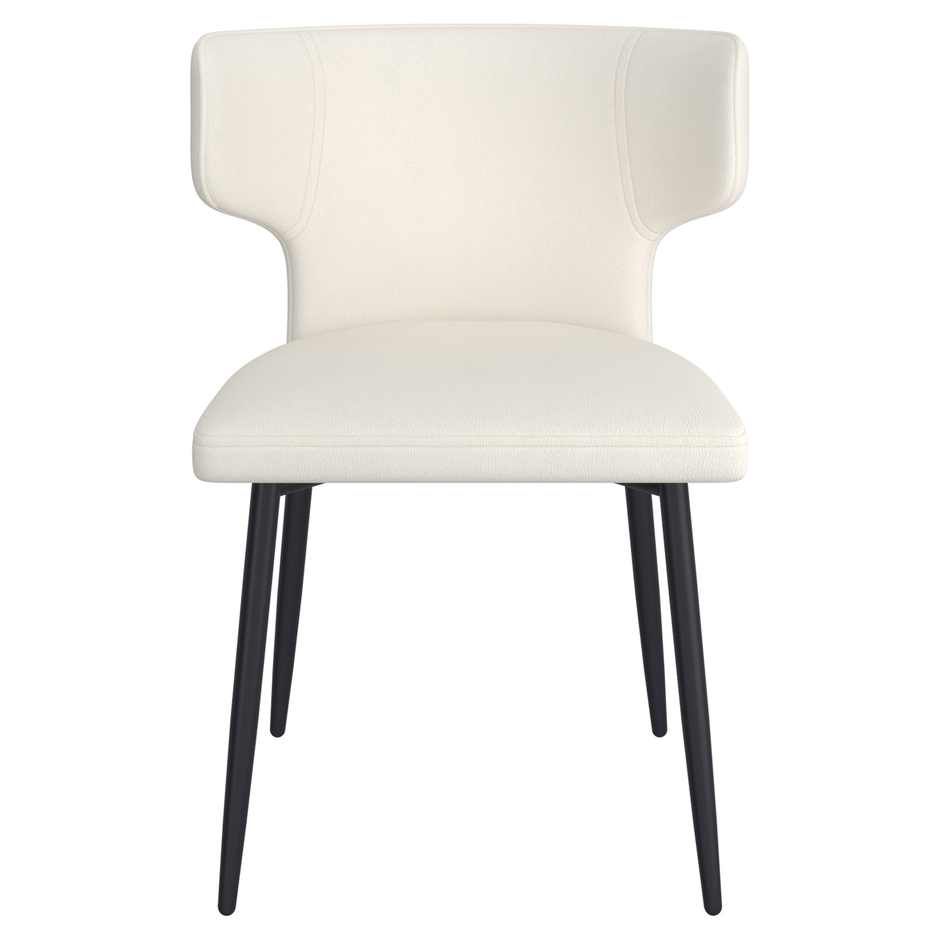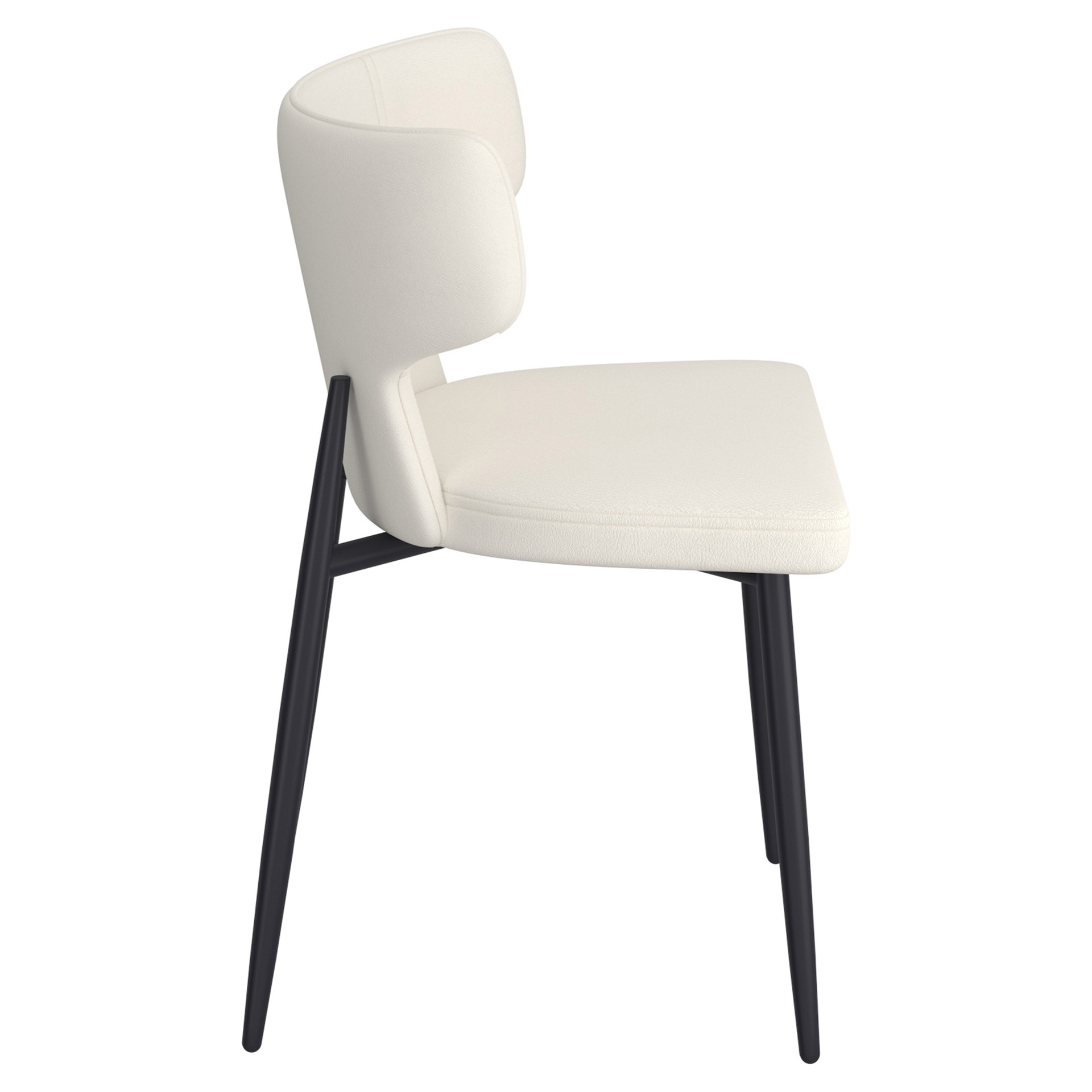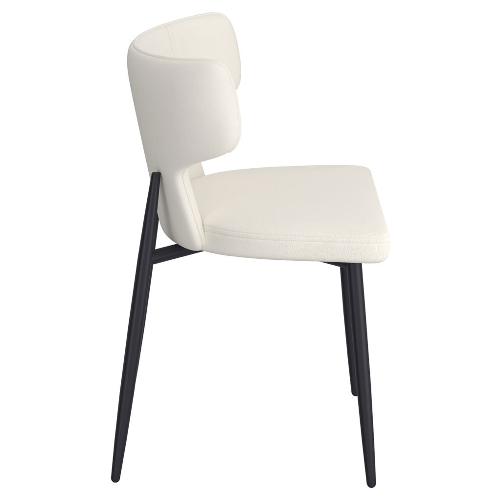 La chaise Olis incarne l'élégance moderne avec son design épuré aux lignes douces et sophistiquées. Son dossier ergonomique aux courbes généreuses offre un confort optimal, tandis que son revêtement en cuir synthétique beige apporte une touche chaleureuse et raffinée à votre espace.