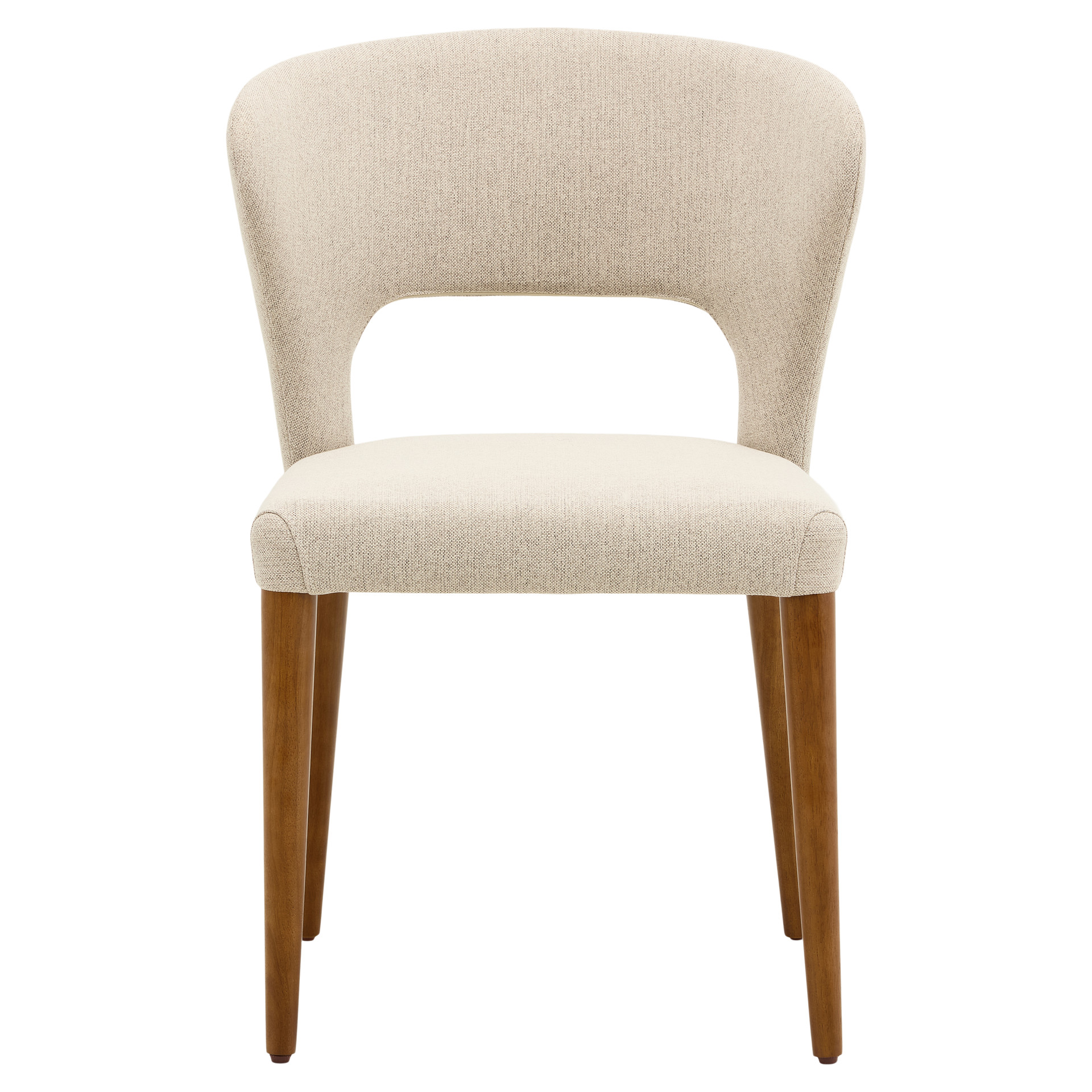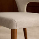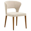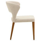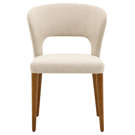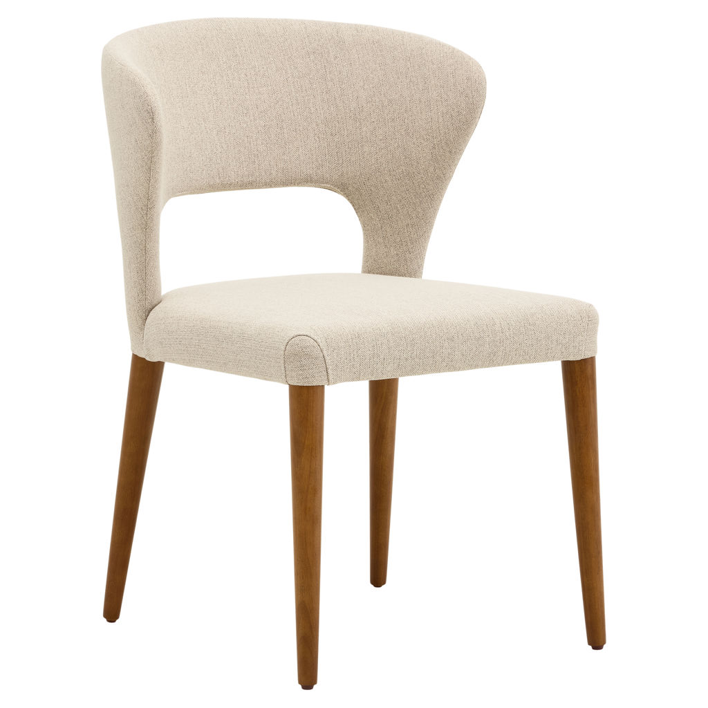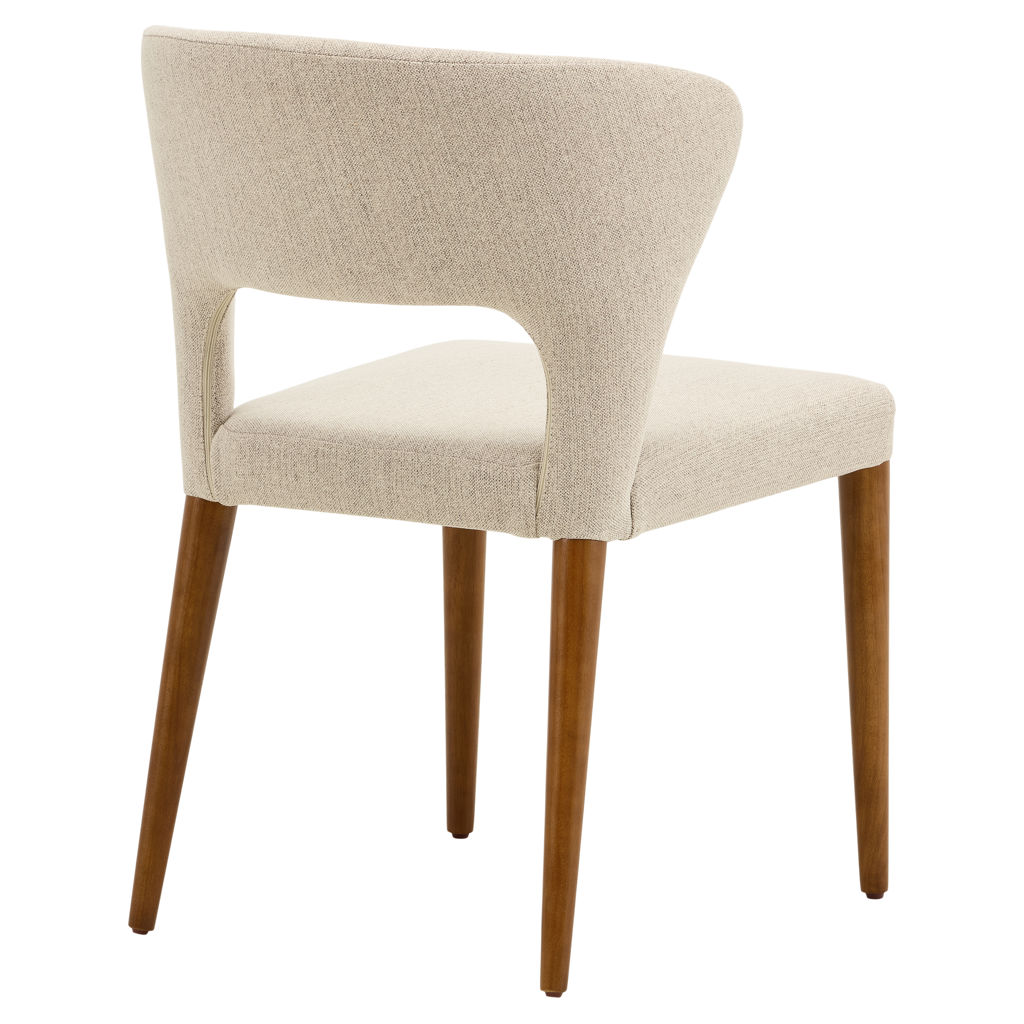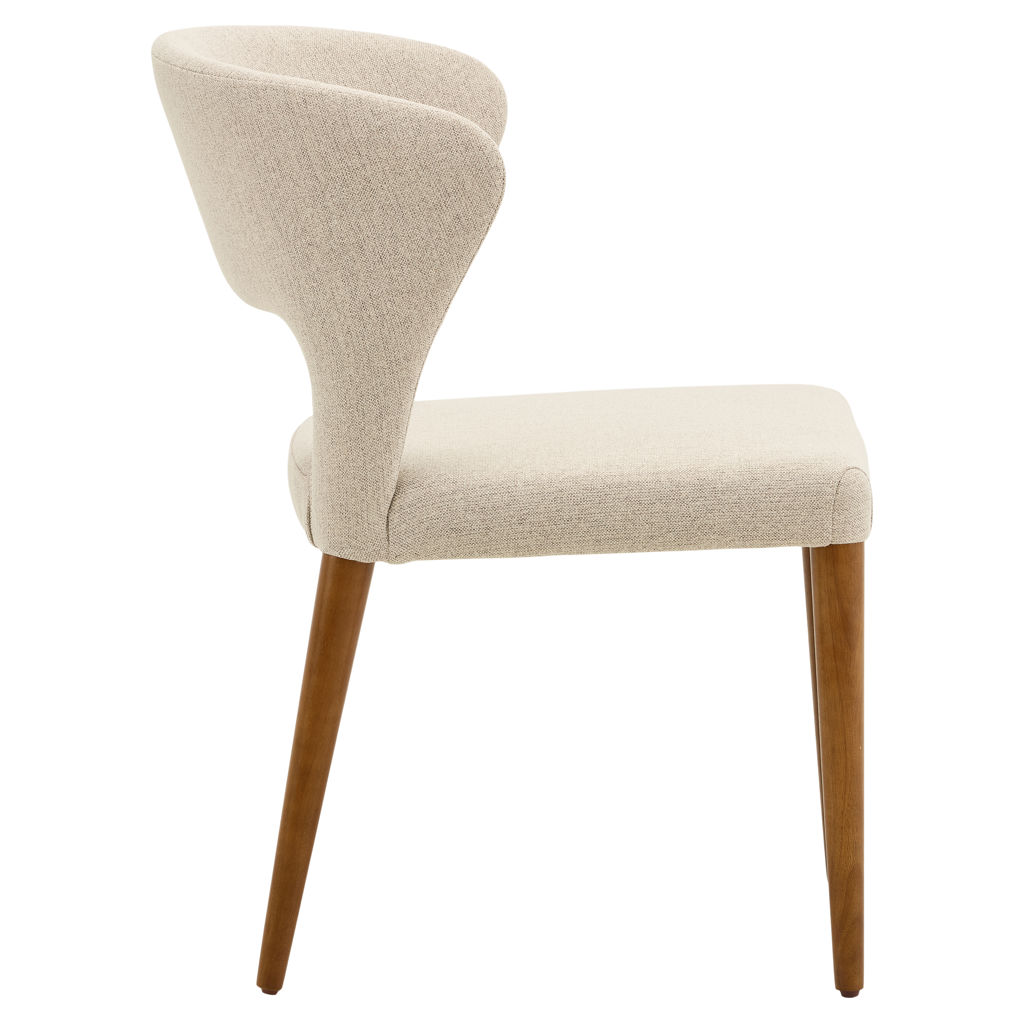 Élégante et enveloppante, cette chaise de salle à manger allie confort et style avec brio. Sa silhouette incurvée épouse naturellement le dos pour un soutien optimal, tandis que le revêtement en tissu texturé crème apporte douceur et raffinement à votre décor. Les pieds fuselés en bois massif ajoutent une touche chaleureuse et rétro, parfait pour une salle à manger moderne ou contemporaine.