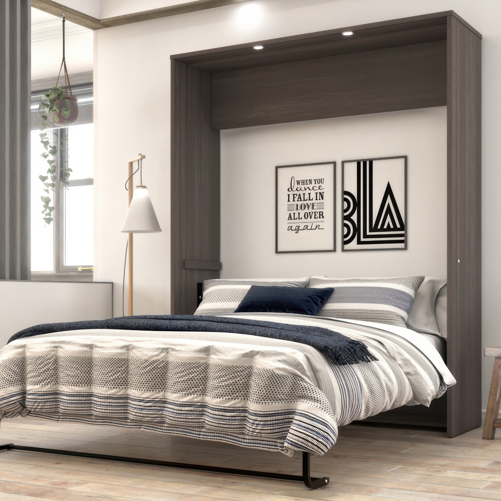Ce grand lit escamotable (queen) solide et confortable peut être utilisé toutes les nuits, c’est le meuble gain de place idéal pour toute pièce multifonctionnelle. Le lit se relève et s’abaisse de façon sécuritaire grâce au mécanisme à double piston.