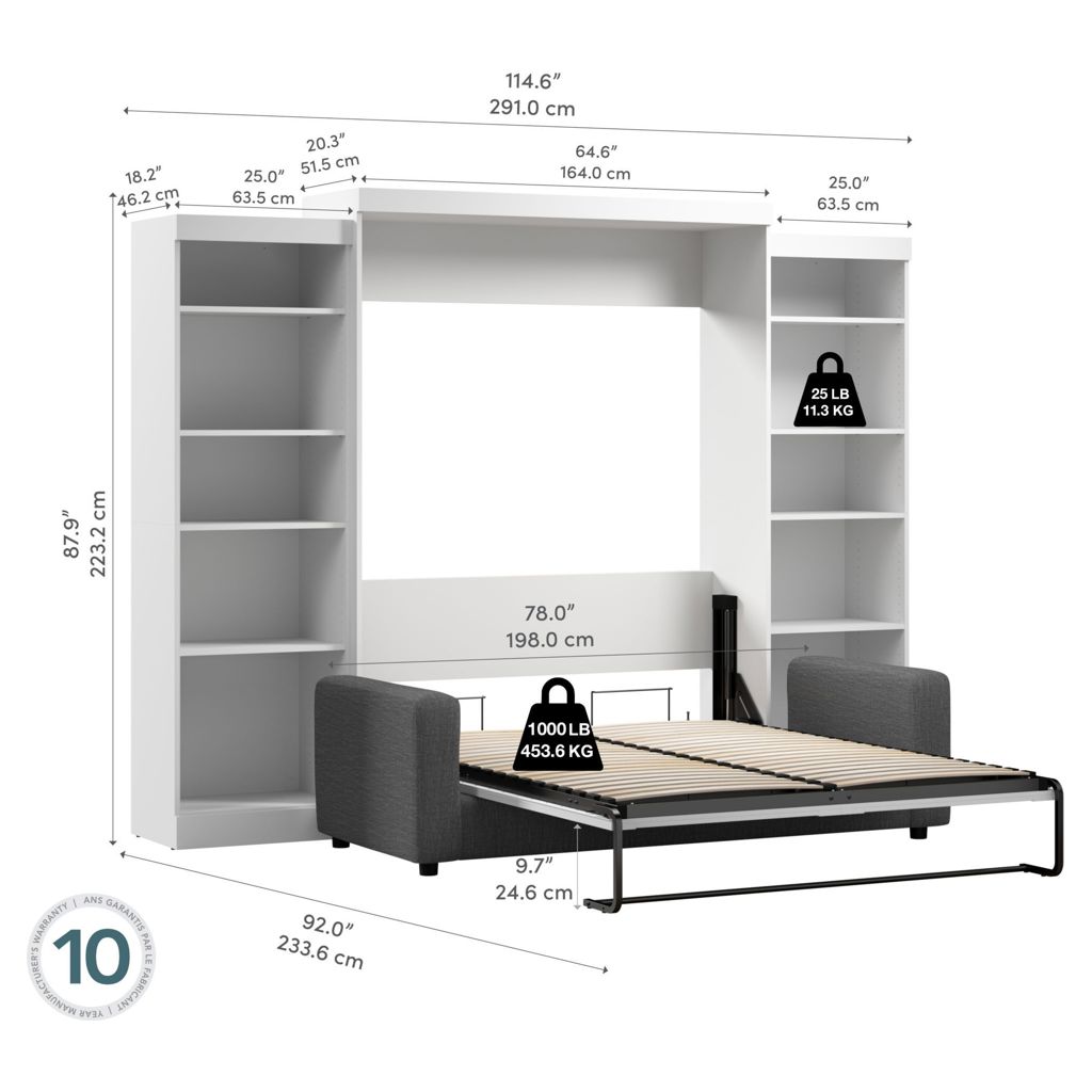 • Cet ensemble comprend 1 lit queen escamotable et 2 unités de rangement 25“.