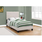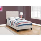 Cadre de lit de à profil bas dans un magnifique tissu aspect lin beige; la tête de lit rembourrée est dotée d'un élégant design capitonné.