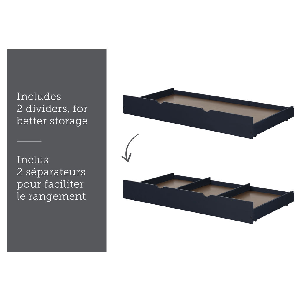 SÉPARATEURS AMOVIBLES: transformez ce lit gigogne en trois tiroirs grâce aux séparateurs amovibles qui viennent avec ce meuble. Vous pourrez y ranger les pyjamas, la literie, les jouets et tous autres accessoires.