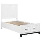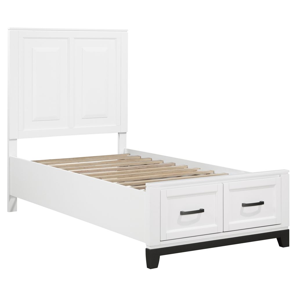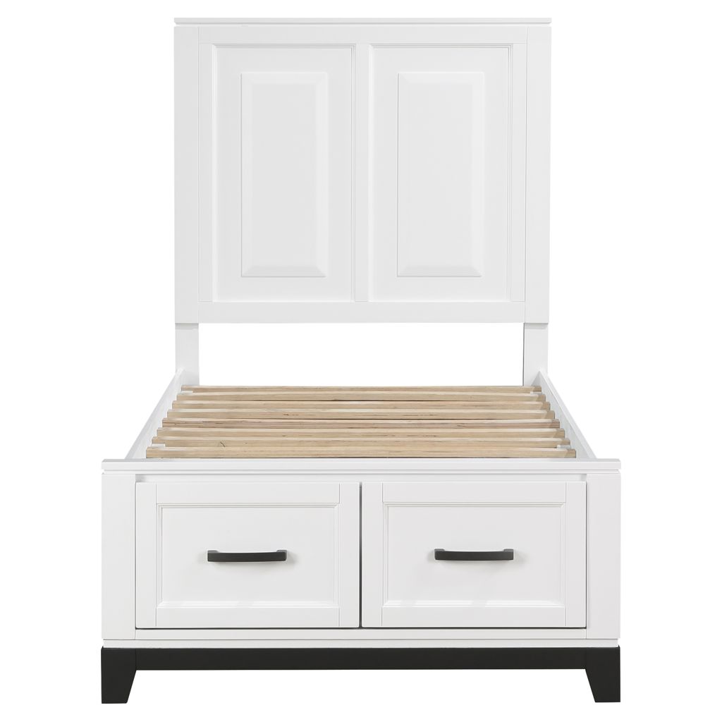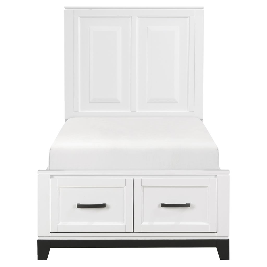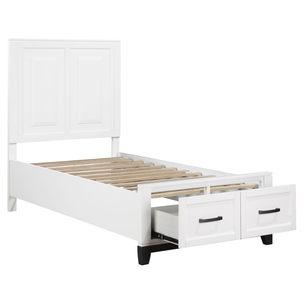 Ce lit avec rangement intégré transforme votre chambre en un havre de paix fonctionnel. Sa finition blanche immaculée s'harmonise parfaitement avec tous les décors, tandis que ses lignes épurées et sa tête de lit à panneaux apportent une touche de raffinement intemporel.