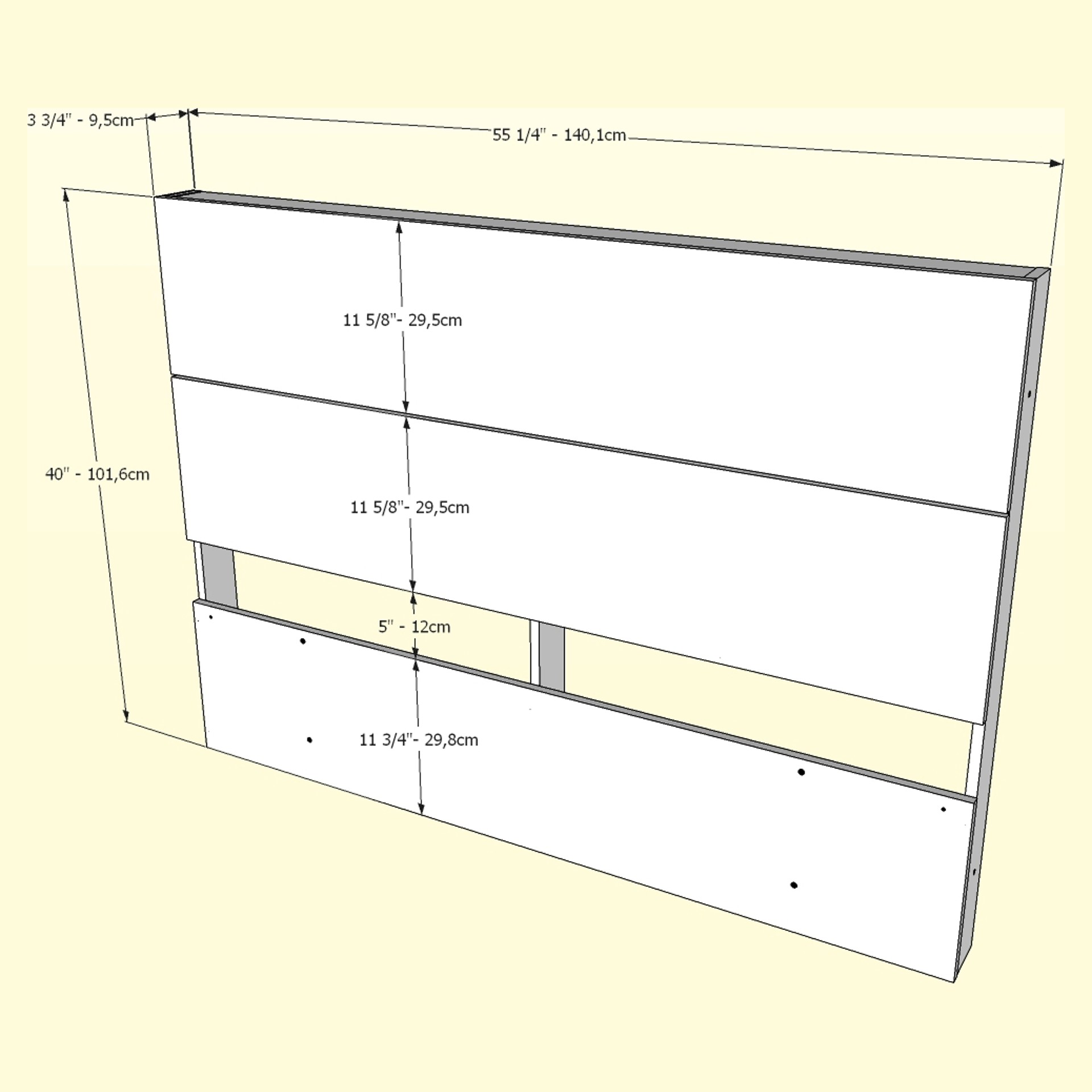 • Tête de lit Double : 55 1/4 X 3 3/4 X 40