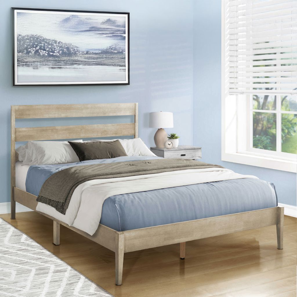 Faites une déclaration dans votre chambre moderne avec ce lit plateforme au style chic et cadre en bois gris !