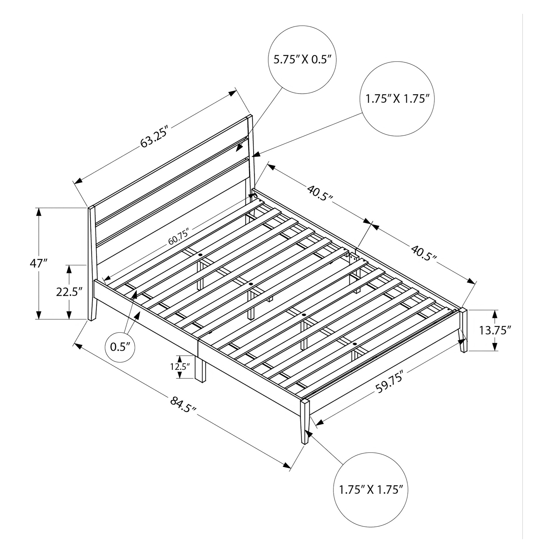 • Hauteur de la base de lit : 13.75 po