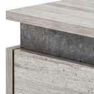 Les tons de gris doux et la texture boisée s'intègrent naturellement à n'importe quel décor, tandis que la bande décorative à effet béton ajoute une touche de caractère distinctif. Les poignées noires élégantes facilitent l'ouverture des tiroirs qui glissent en douceur.
