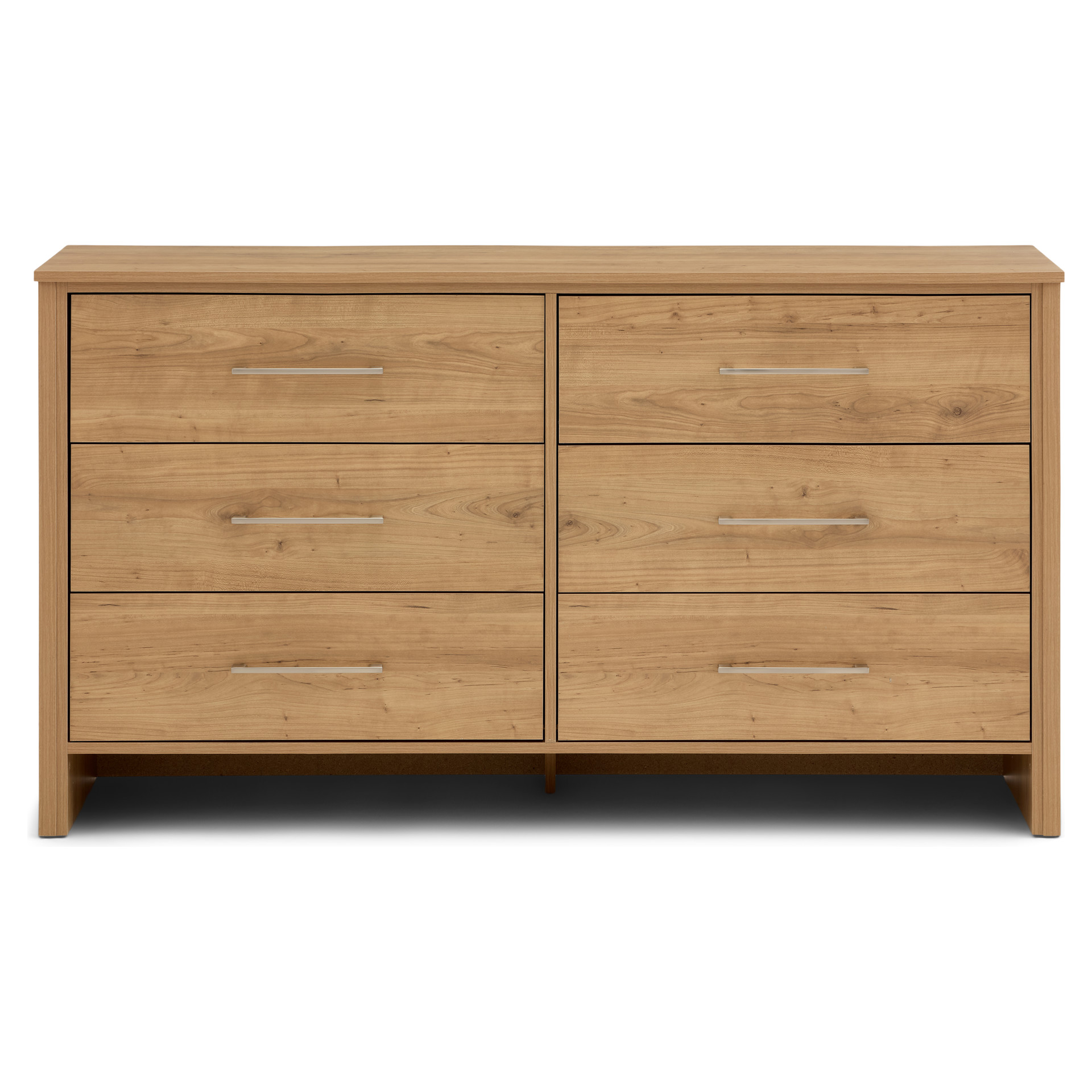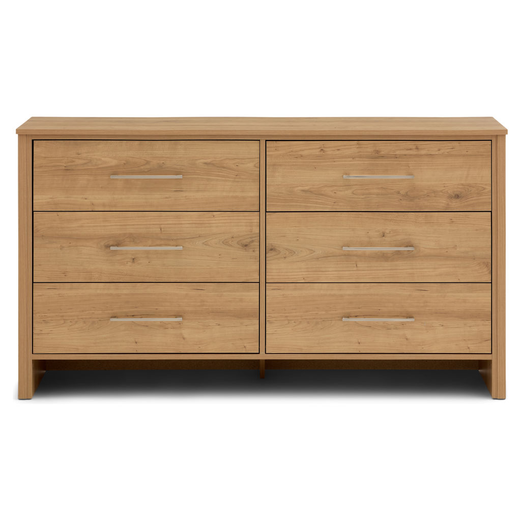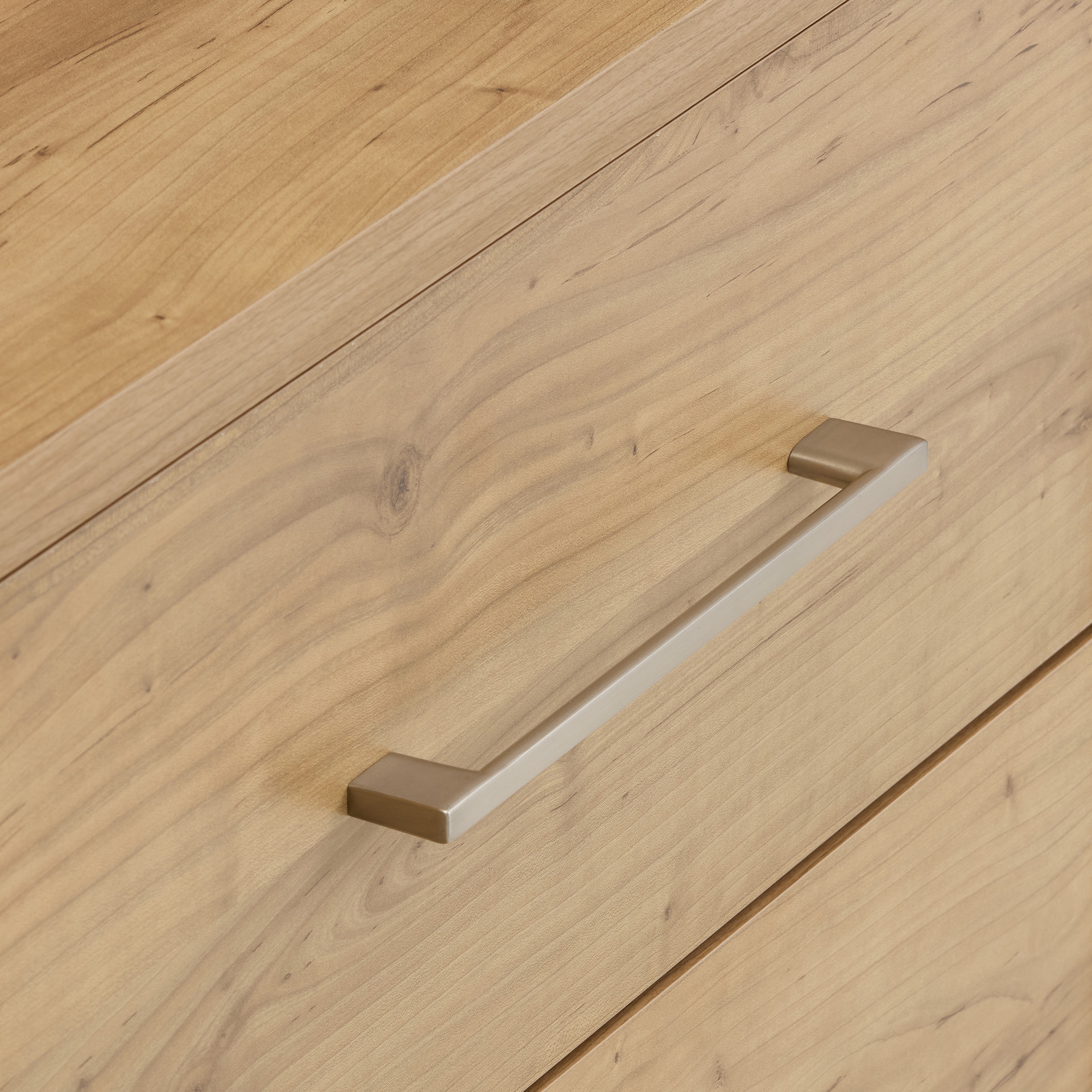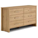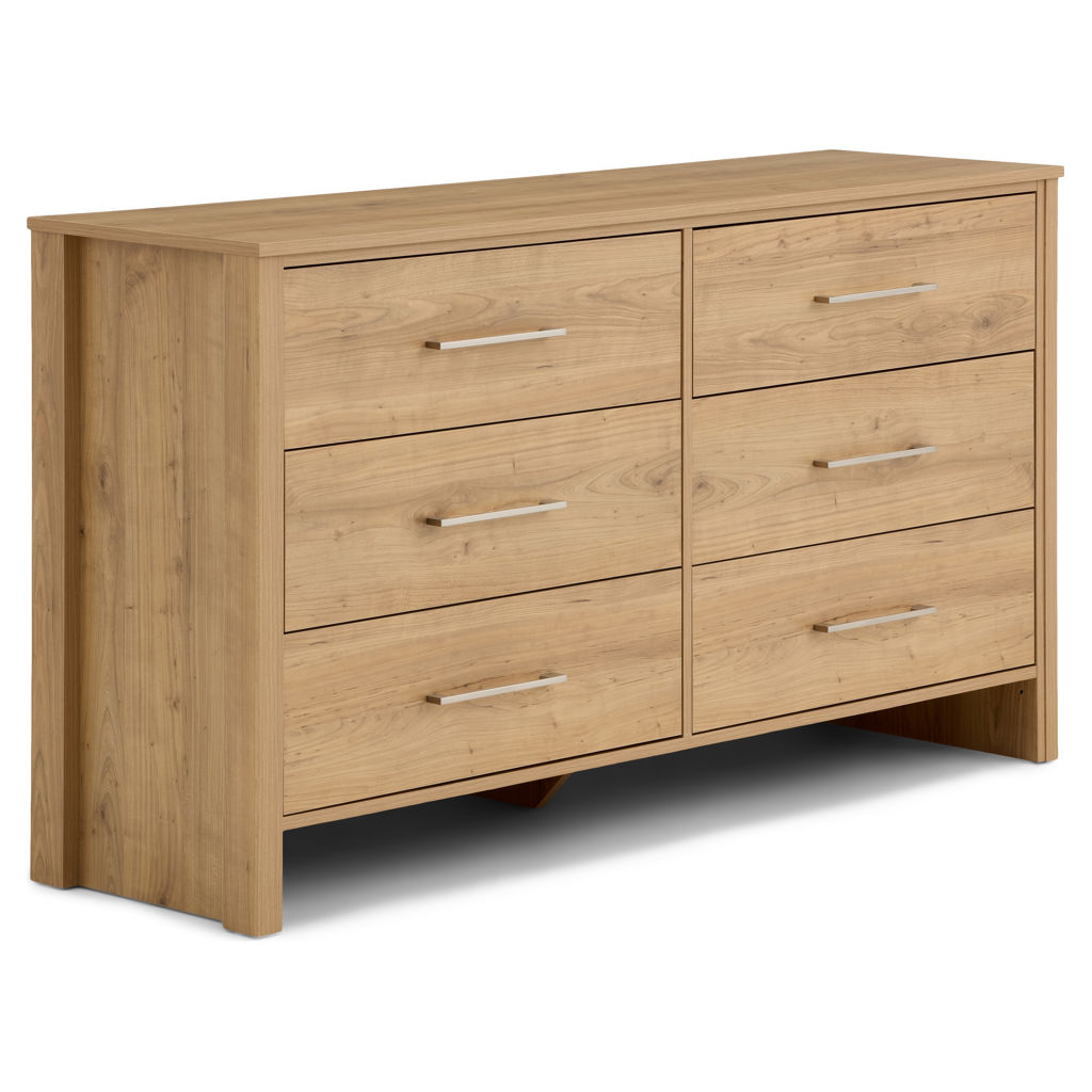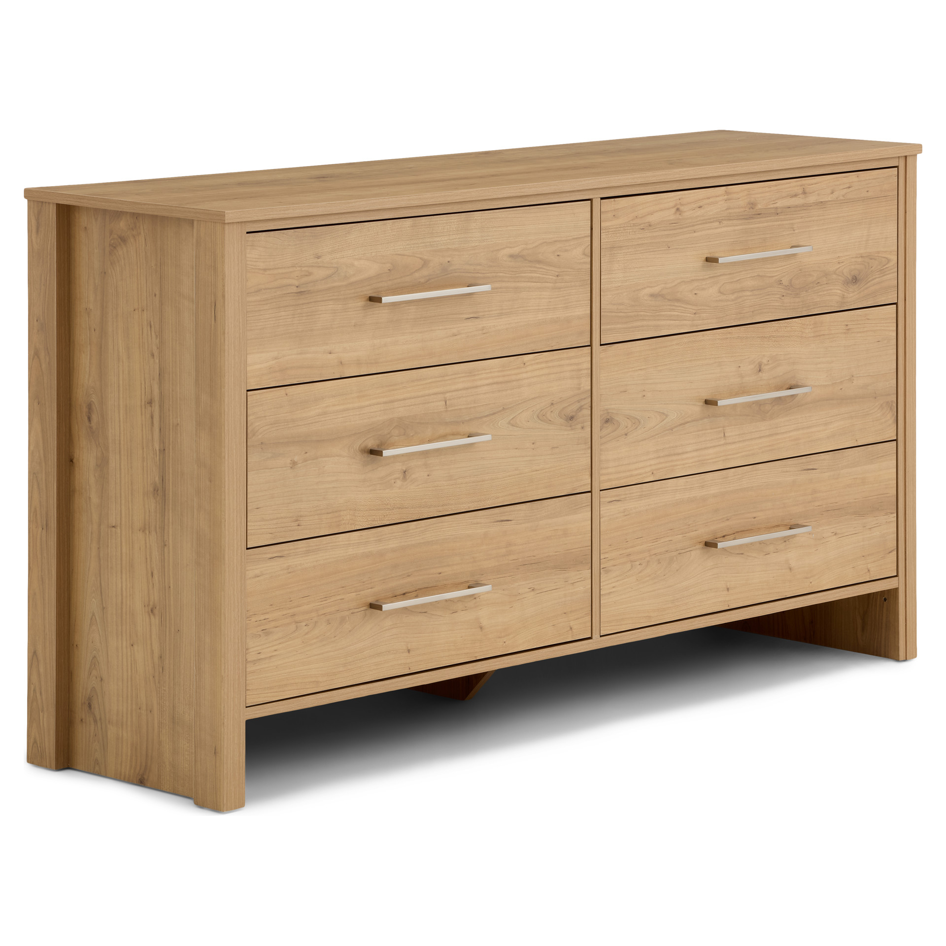 Cette commode double allie beauté naturelle et praticité au quotidien. Avec ses six tiroirs spacieux, elle offre amplement d'espace pour organiser vêtements, accessoires et essentiels. Le fini bois chaleureux apporte une touche d'élégance intemporelle à votre chambre, tandis que les poignées métalliques modernes ajoutent une note raffinée.