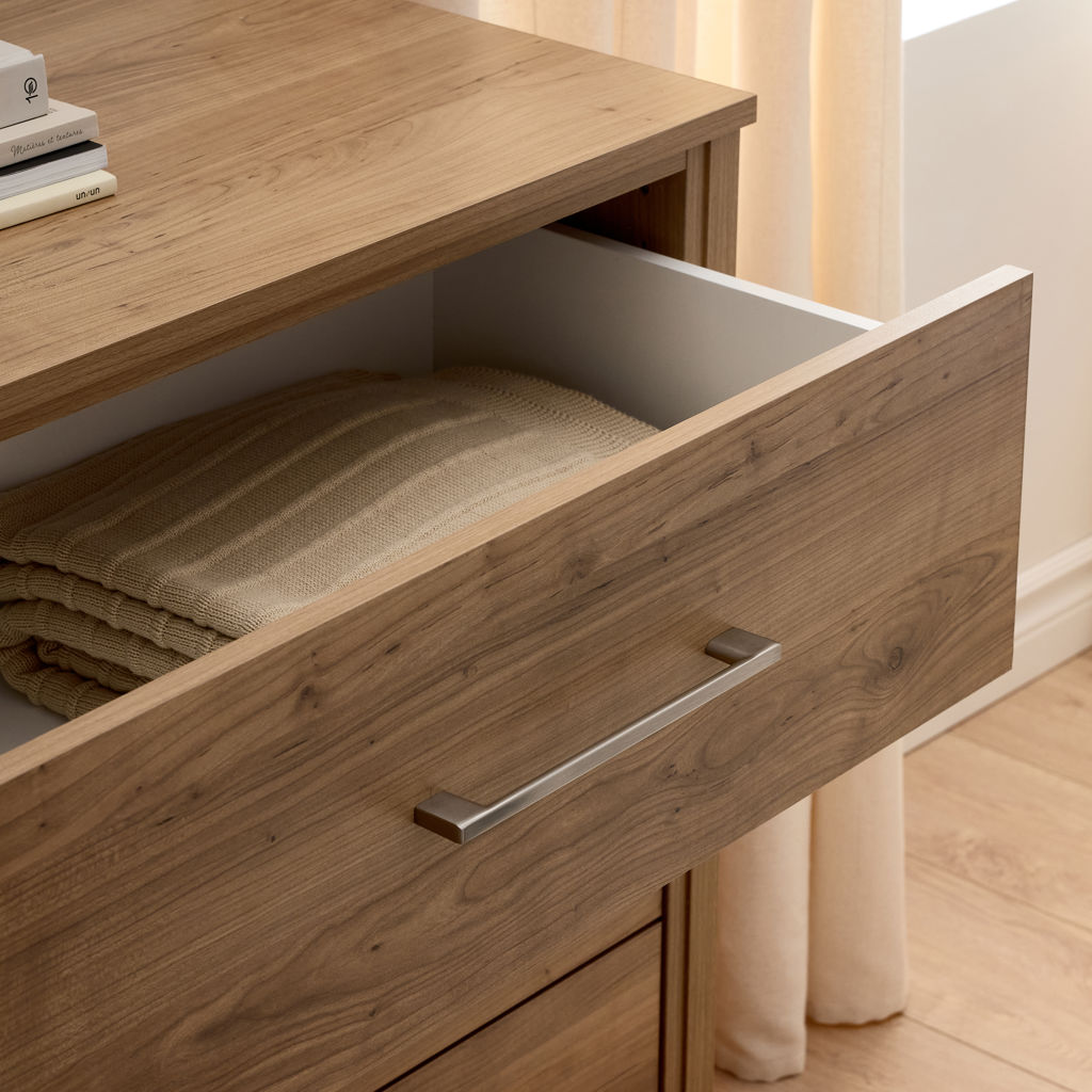 Sa construction robuste garantit durabilité et stabilité pour un usage quotidien. Les tiroirs glissent en douceur, rendant l'accès à vos effets personnels simple et agréable. Son design polyvalent s'intègre harmonieusement à différents décors, créant un espace de rangement à la fois beau et organisé.