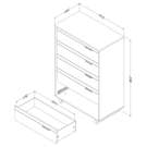 Les petits détails ont une grande importance. En effet, les poignées en métal des tiroirs donnent à l’ensemble un style contemporain très tendance. Les cinq tiroirs sont montés sur des coulisses en métal durables qui allongeront la vie du meuble.