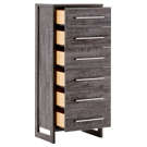 Cette commode à six tiroirs spacieux répond parfaitement à vos besoins de rangement. Sa finition en mélamine imite à la perfection le grain naturel du bois, apportant chaleur et caractère à votre espace. Les poignées métalliques élégantes facilitent l'ouverture de chaque tiroir, révélant un intérieur soigneusement conçu pour organiser vêtements et accessoires.