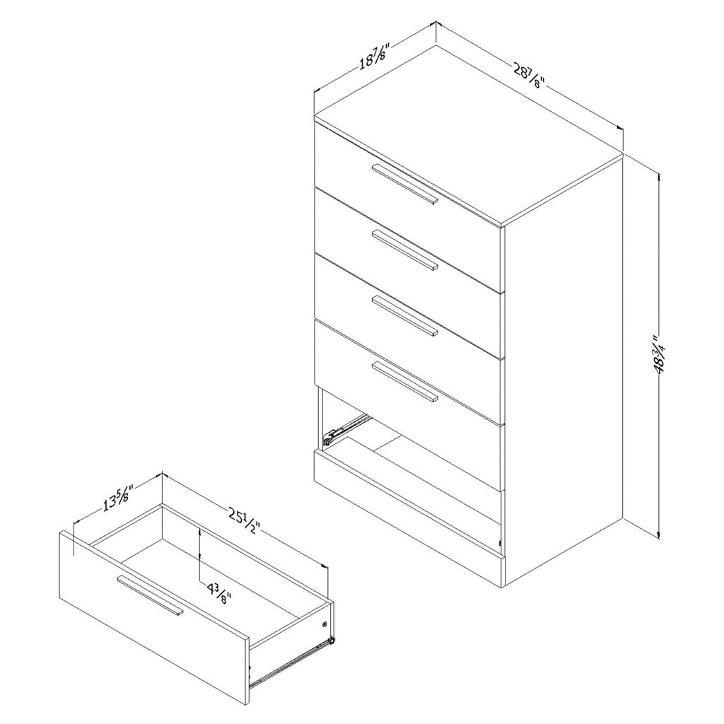 Avec ses 5 tiroirs, cette commode offre un bon complément à la garde-robe pour y ranger pantalons, gilets, bas et sous-vêtements. Chaque tiroir peut supporter une charge allant jusqu’à 25 livres grâce à ses coulisses robustes en métal.