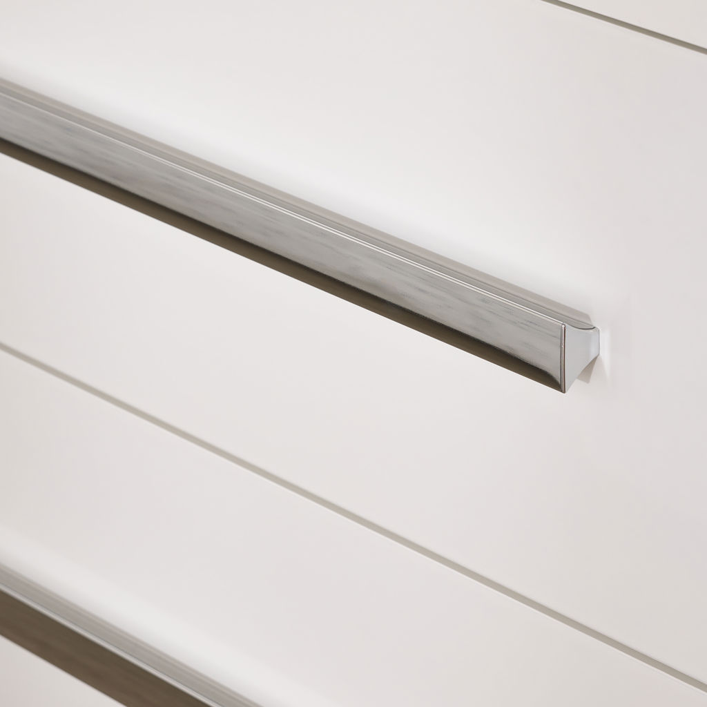 Les poignées en aluminium brossé apportent une touche contemporaine et raffinée. La construction en mélamine assure une durabilité remarquable et un entretien sans effort – un simple coup de chiffon suffit pour préserver son éclat.