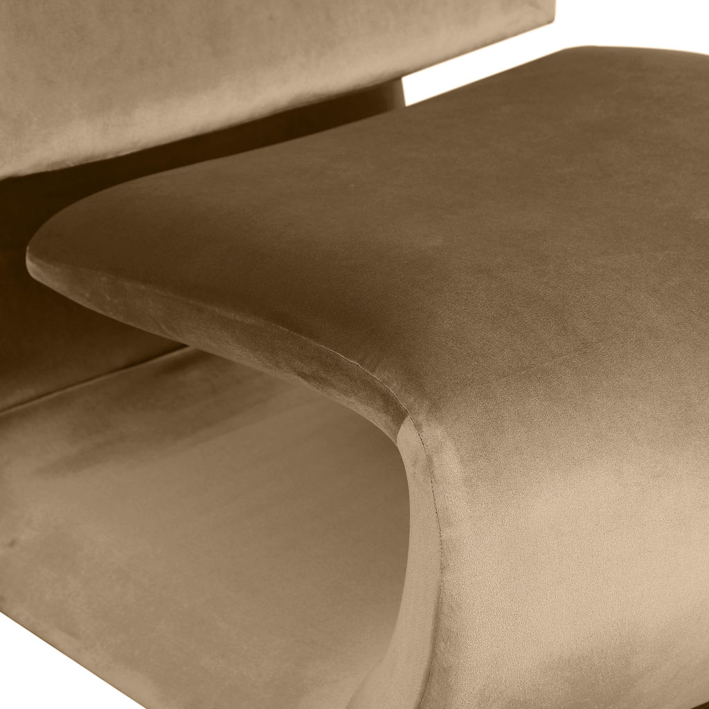 La chaise d'appoint ludique en velours beige Nouveau est une pièce unique qui suscitera la conversation.