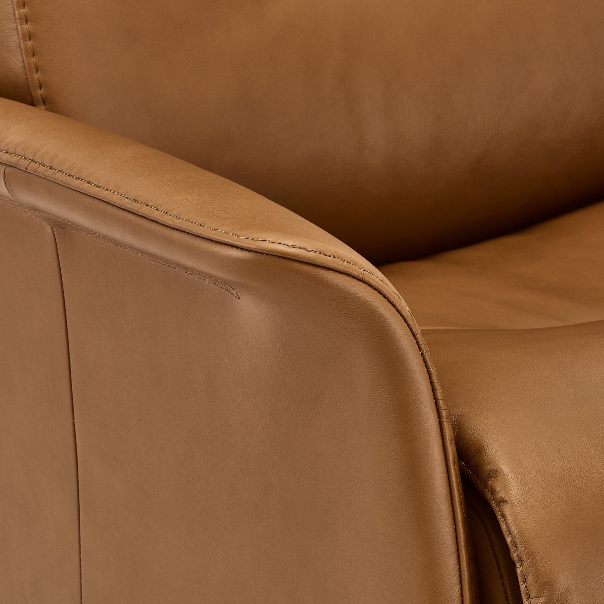 Découvrez l'élégance intemporelle du fauteuil Tampa, entièrement revêtu de cuir véritable aux tons chaleureux. Sa base pivotante et son mécanisme de relaxation électrique vous offrent une expérience de confort personnalisée à chaque instant.