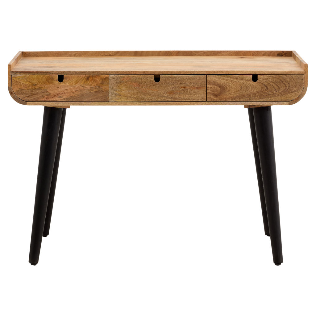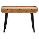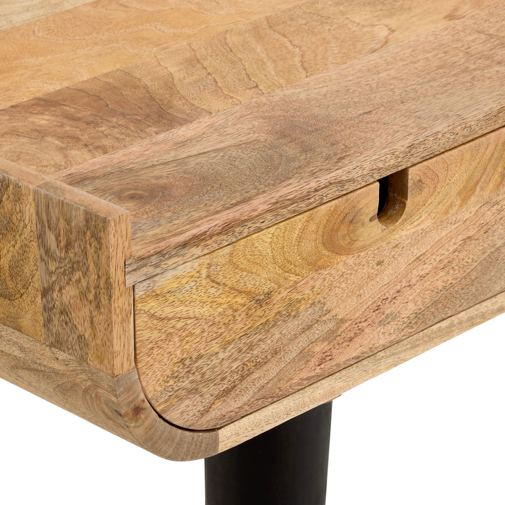 Cette console en bois massif apporte instantanément chaleur et caractère à votre intérieur. Son plateau généreux offre un espace d'exposition idéal pour vos objets déco, tandis que ses trois tiroirs discrets permettent de ranger vos essentiels en toute élégance.