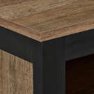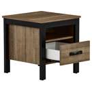 Cette table de bout allie parfaitement fonctionnalité et esthétique moderne. Son design bicolore combine harmonieusement un fini bois chaleureux avec une structure noire contrastante, s'adaptant facilement à tous les décors.
