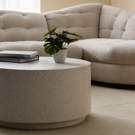 Apportez un style contemporain à n'importe quel espace avec cette table basse ronde. Fabriquée à partir de béton avec une finition terrazzo composée de marbre, de quartz, de granit et de copeaux de verre. Également disponible en noir et gris, avec une table d'appoint coordonnée.