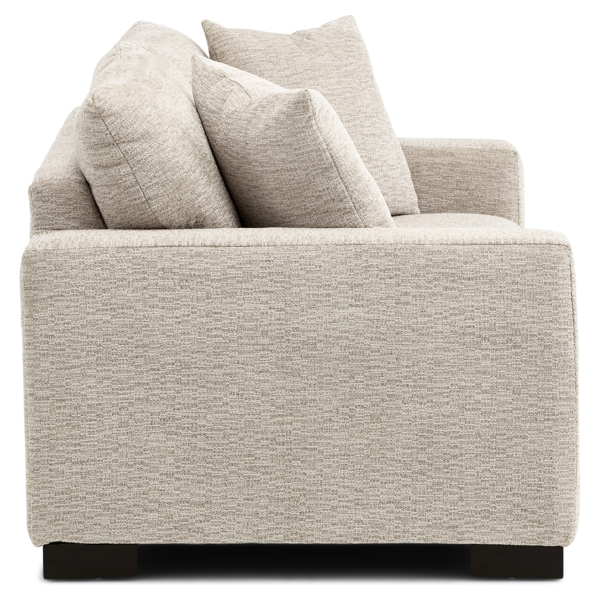 La causeuse 1907 incarne l'élégance contemporaine avec son design épuré et intemporel. Son revêtement en tissu texturé dans un coloris naturel s'harmonise parfaitement avec tout style de décoration, tandis que ses lignes droites et ses coussins généreux promettent un confort optimal.