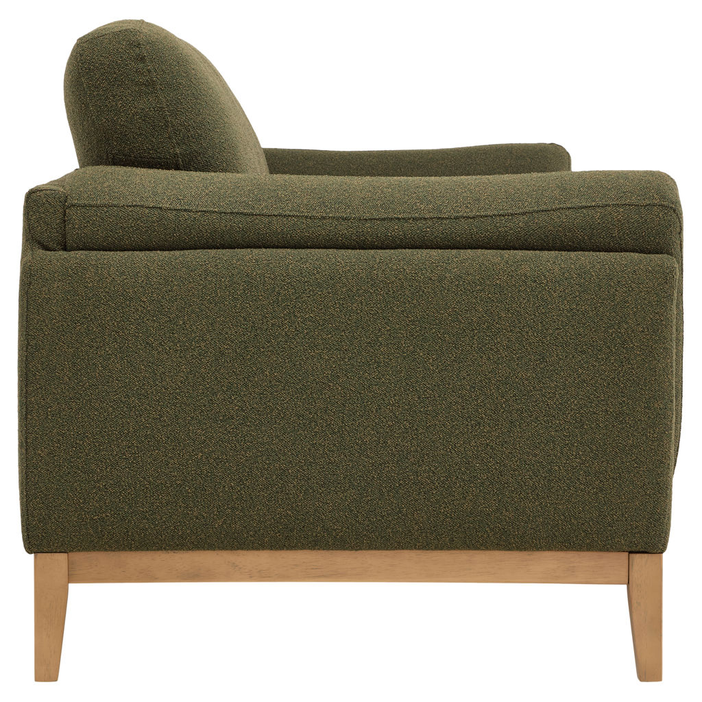 Tombez sous le charme de ce magnifique canapé. Son sublime tissu vert olive apporte cette touche de caractère et de sophistication que votre salon attendait, tandis que sa structure en bois clair révèle un savoir-faire authentique.