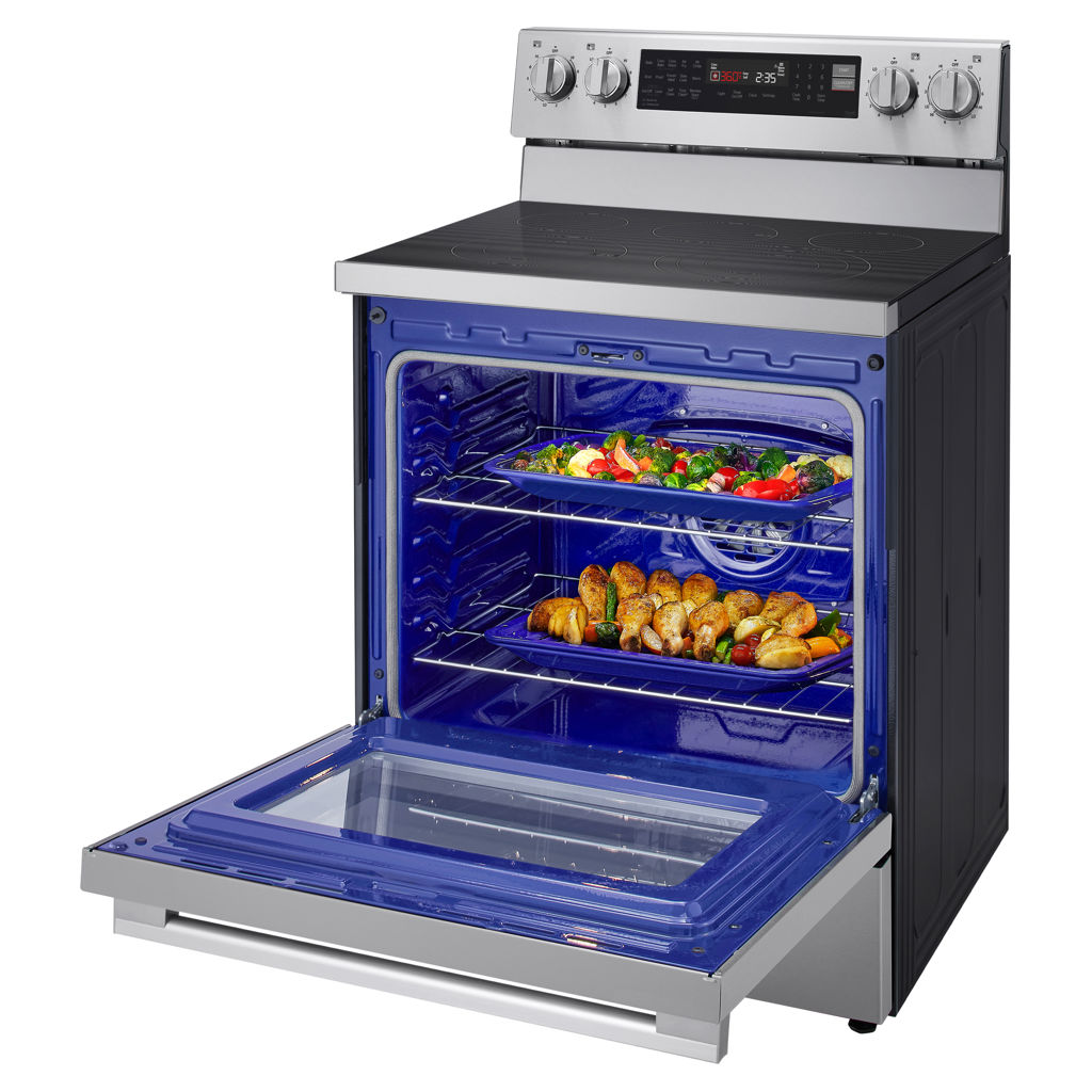 LG ProBake Convection® vous offre une technologie professionnelle à domicile grâce à un ventilateur à deux vitesses et un élément chauffant arrière ultra-puissant. Le four sélectionne automatiquement la vitesse la plus basse pour une cuisson délicate ou la vitesse la plus élevée pour la friture et le rôtissage à l'air libre. Résultat : un préchauffage et une cuisson plus rapides et une cuisson plus uniforme sur plusieurs grilles simultanément.