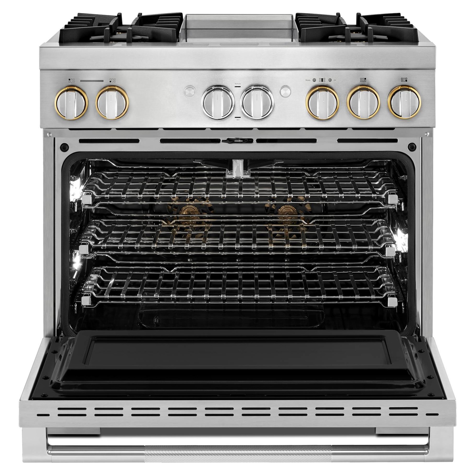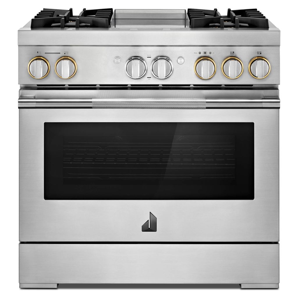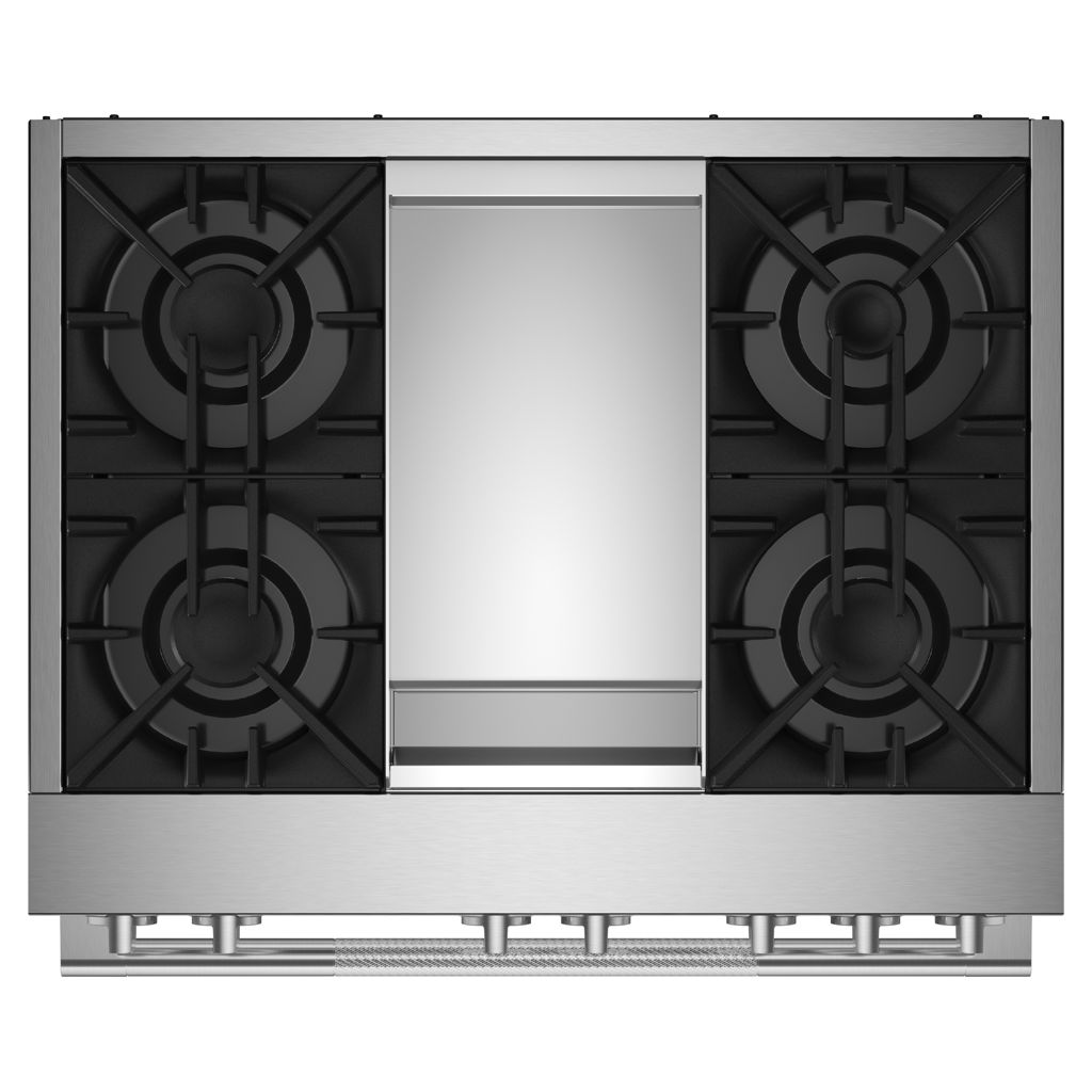 Cuisinière professionnelle RISE™ à double carburant de 36 po avec plaque chauffante infusée de chrome