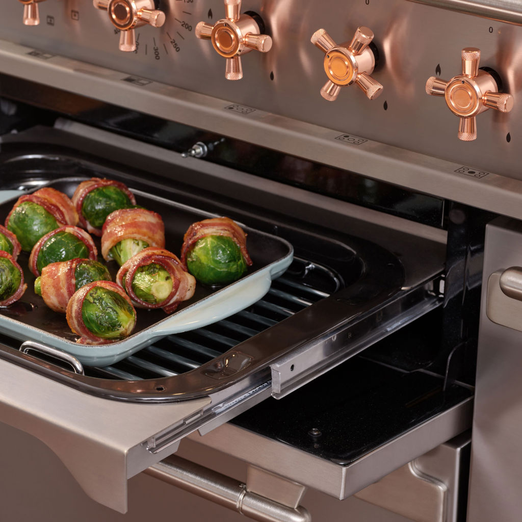 Un deuxième four à convection européenne offre la possibilité de cuire plusieurs grands plats à la fois en utilisant différents modes de chauffage et températures, tandis qu'un troisième four à gril coulissant dédié permet une cuisson au gril par le haut dédiée.
