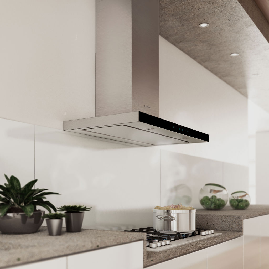 Disponible en largeurs de 30" et 36", Lugano comprend un puissant ventilateur de 600 CFM, un éclairage LED avec fonctions à intensité variable et des commandes tactiles capacitives en verre.