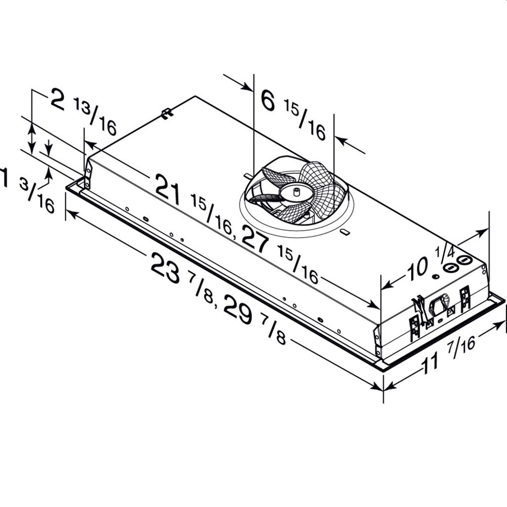 • Ventilateur efficace aspirant jusqu’à 300 pi³/min avec un  fonctionnement silencieux de 3 sones à vitesse normale.