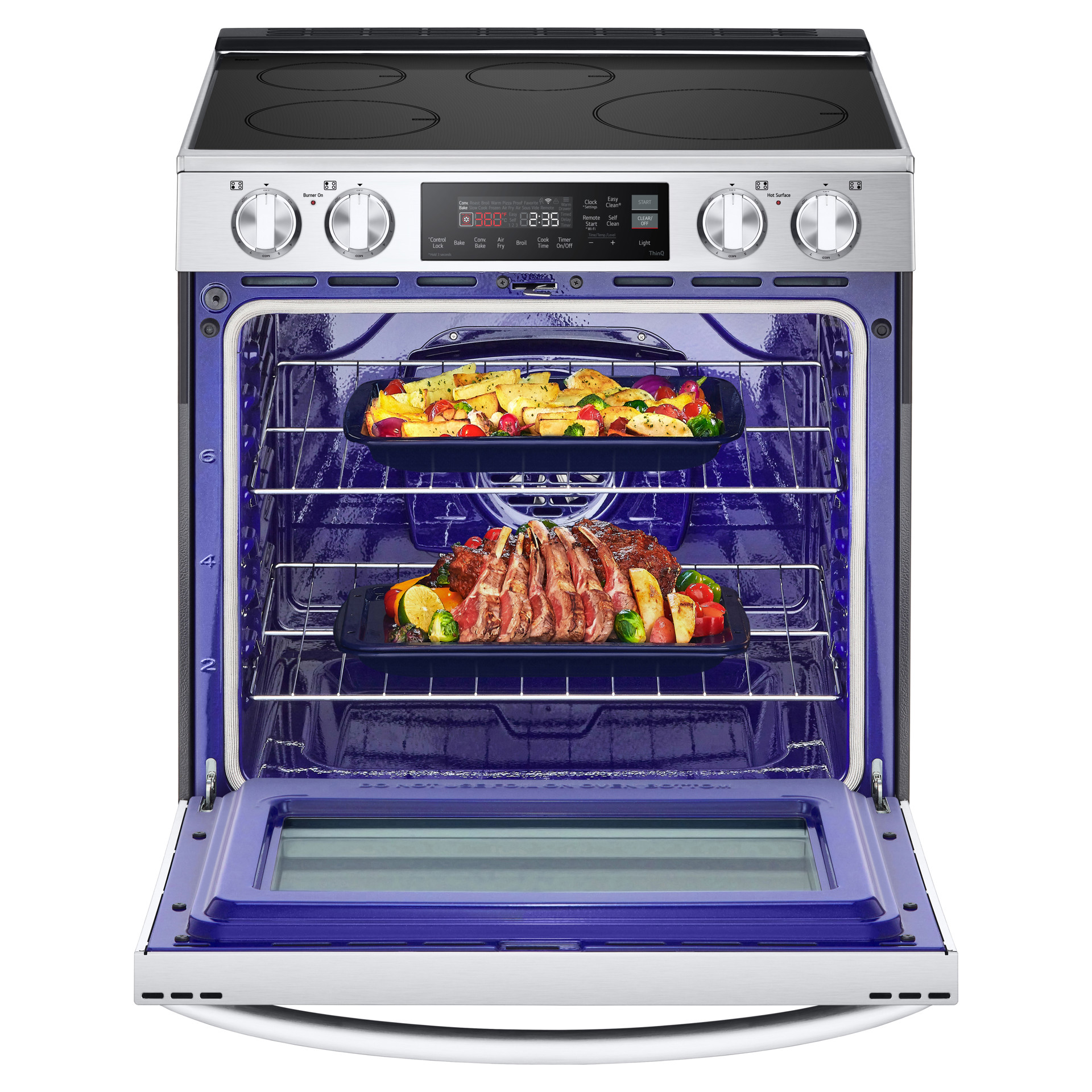 Utilisez l'application ThinQ® pour démarrer le four, régler les minuteries et vérifier votre appareil où que vous soyez.³ Parlez simplement pour contrôler votre four avec Alexa ou Google Assistant. De plus, grâce à la technologie scan-to-cook et à LG Smart Cooking Partners, vous pouvez envoyer des instructions de cuisson directement dans votre four en scannant simplement le code-barres sur l'emballage des plats cuisinés?, ou en sélectionnant l'une des milliers de recettes de SideChef.