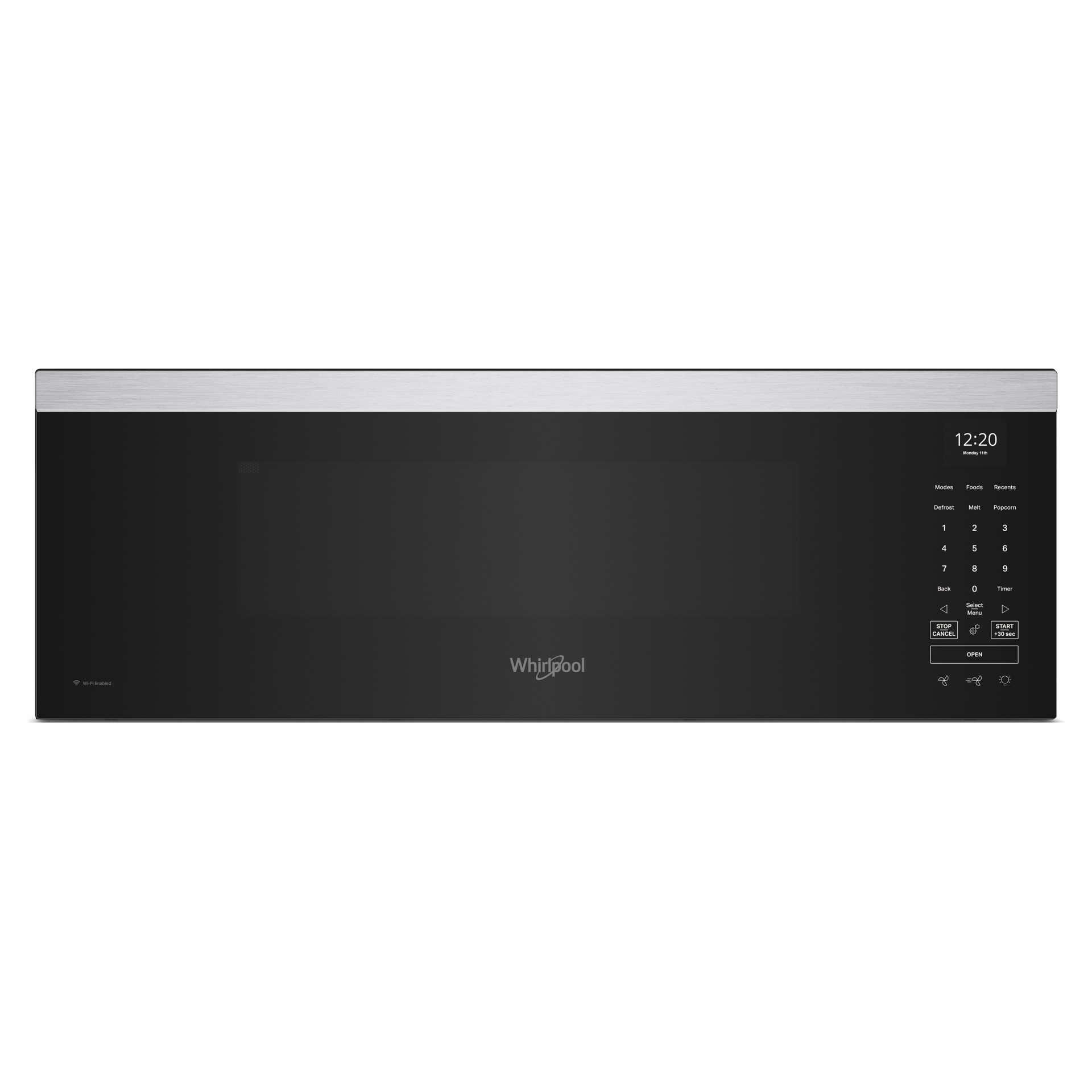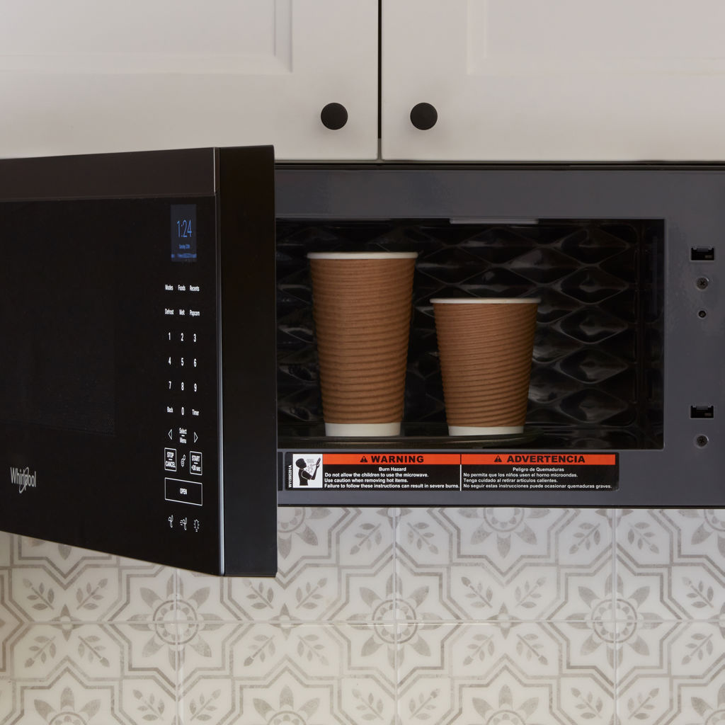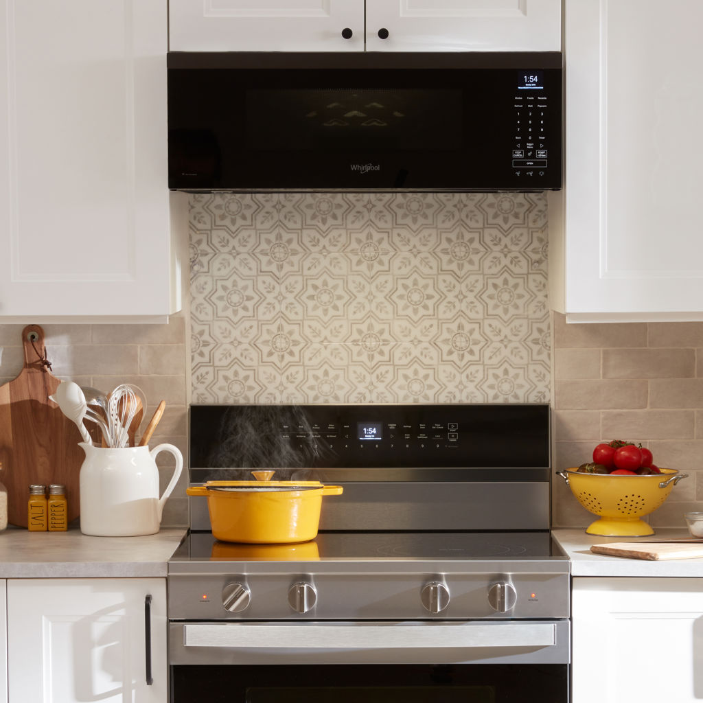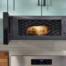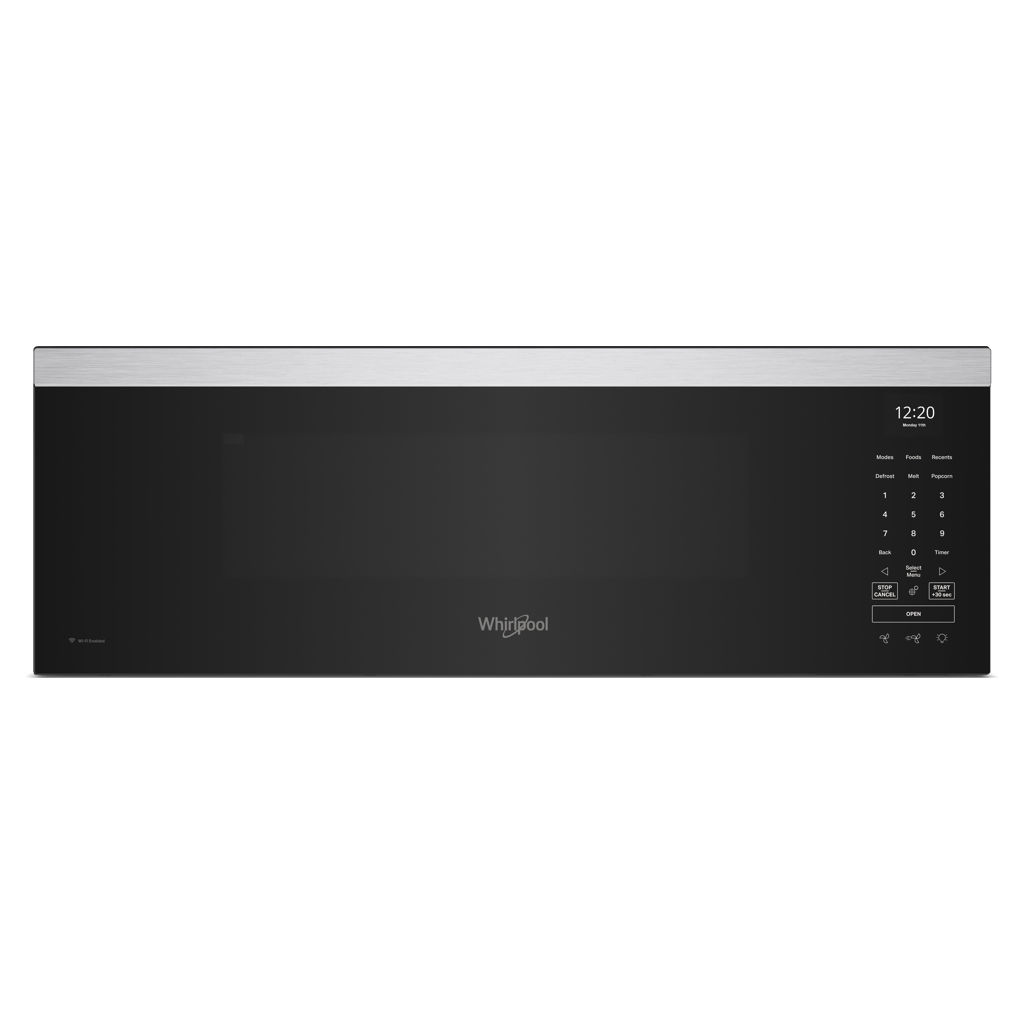 Trouvez un meilleur ajustement pour votre cuisine avec ce four à micro-ondes à hotte intégrée intelligent avec ventilation à 4 vitesses de 450 pi³/min.